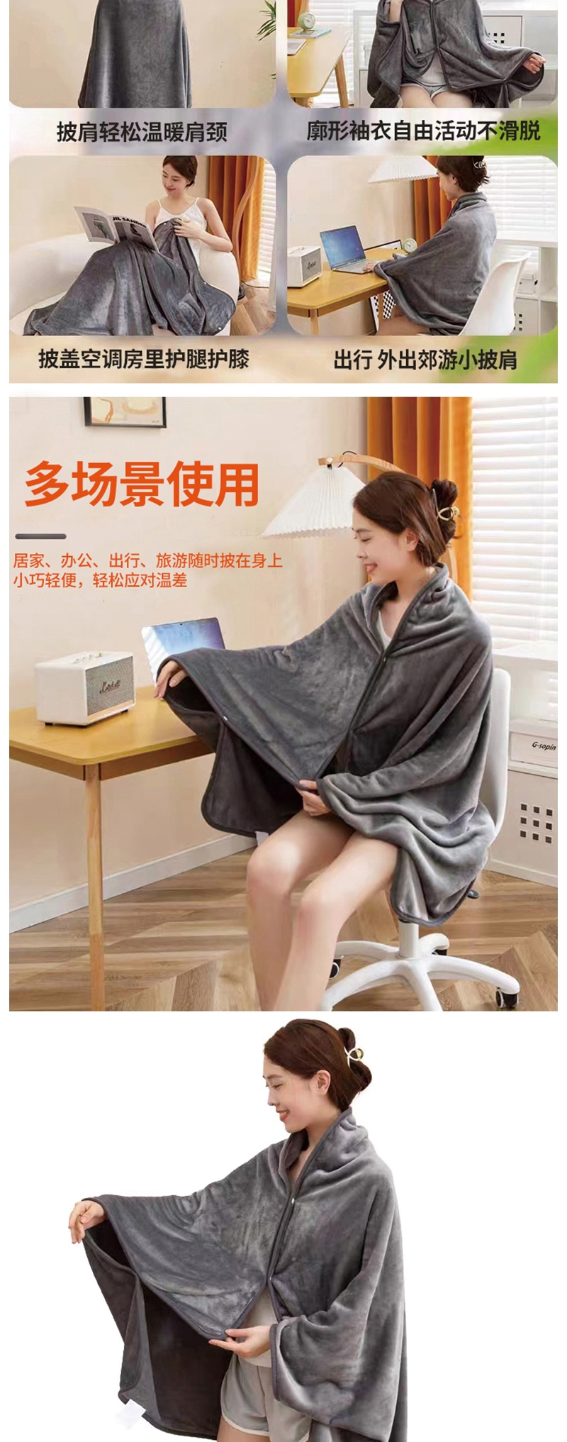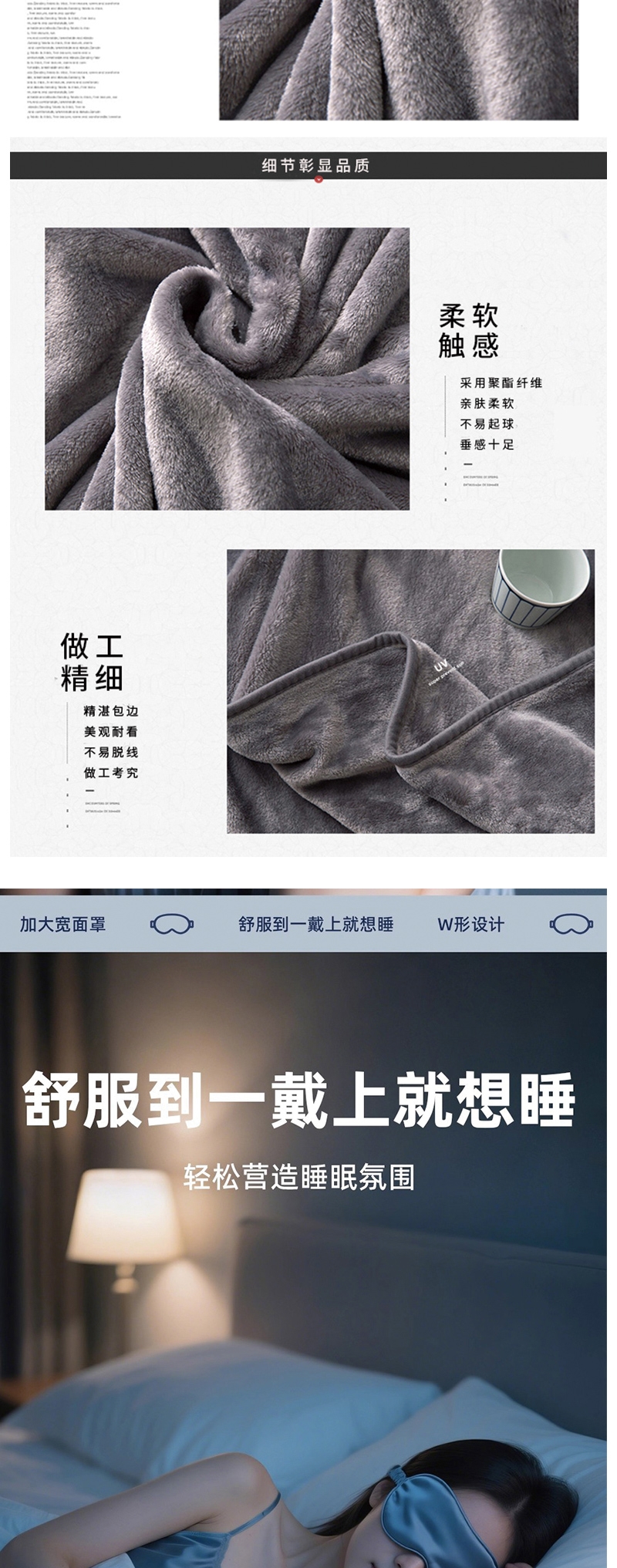 加厚多用毛毯保暖锁温一毯多用居家盖毯办公披肩都适配;艾草养生按摩捶草本养护人体工学设计轻巧便携;护眼眼罩亲肤舒适遮光助眠可调节设计
