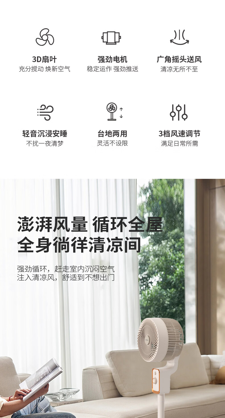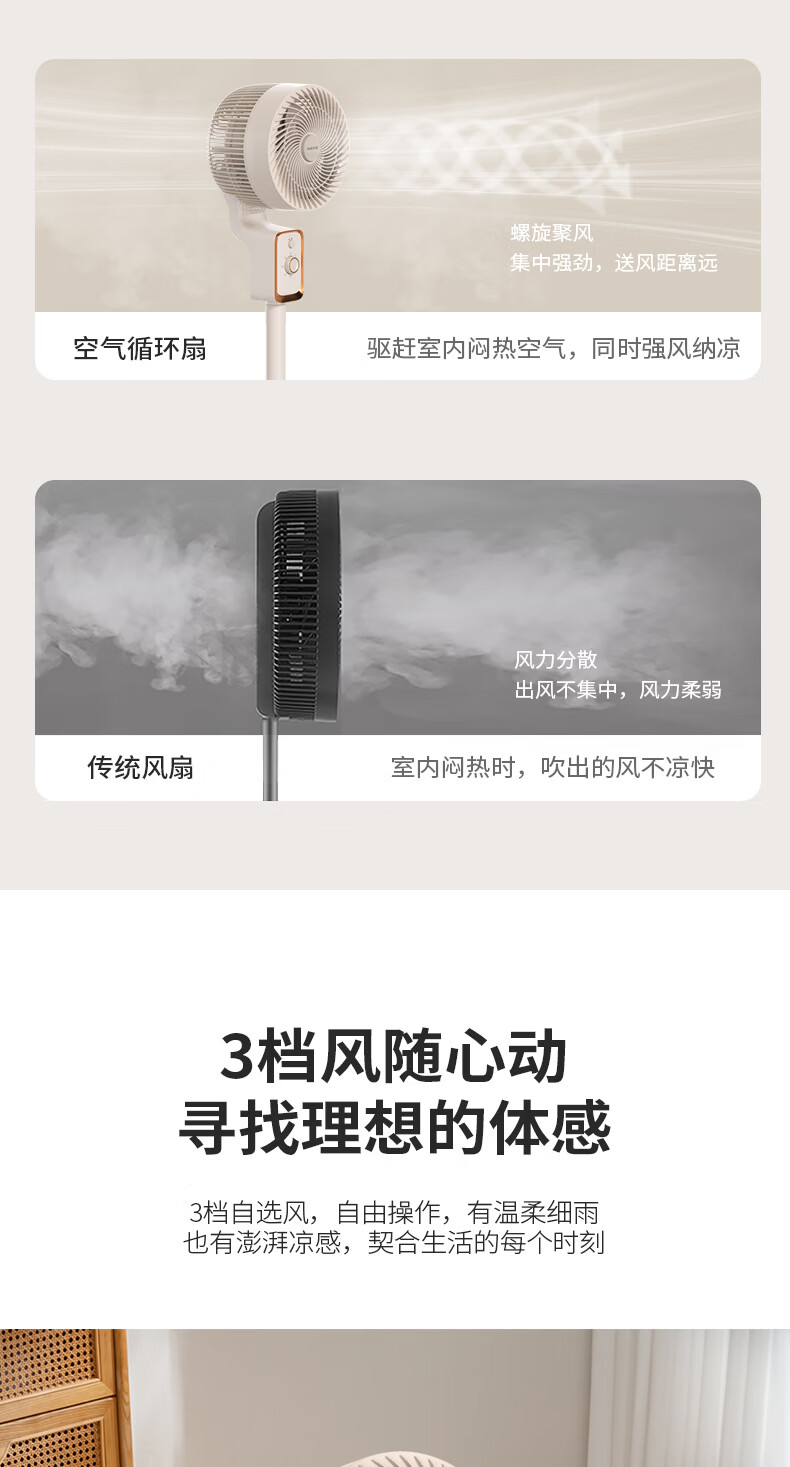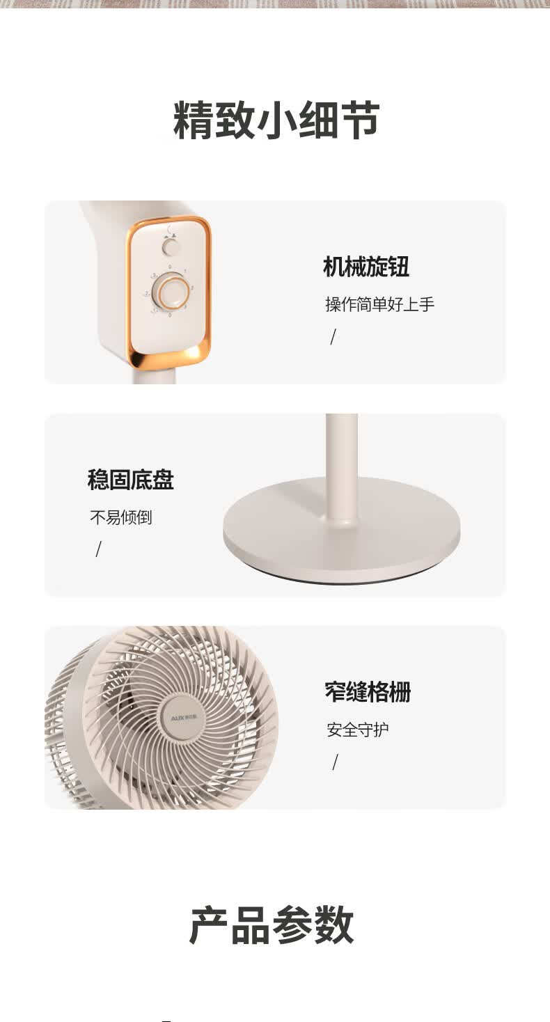3档风速调节,机械旋钮,操作简单;隐藏式提手,方便提拿;贴心设计香薰盒,可放置防蚊虫香薰,驱赶蚊虫