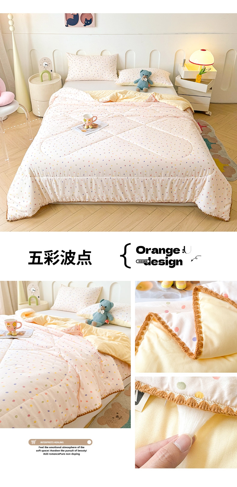 甄选A类水洗双层纱面料,织造紧密,如婴儿肌肤般柔软;填充整张100%新疆棉花,蓬松性好,亲肤细腻;新一代活性印染工艺,颜色靓丽,不易起球,不易褪色