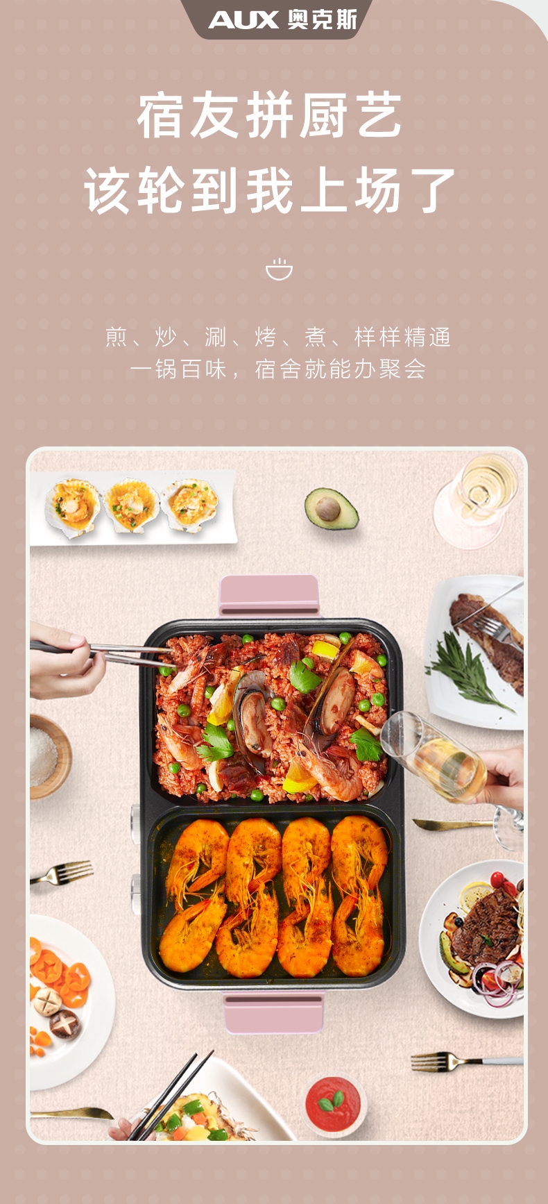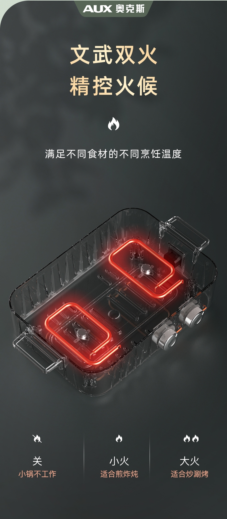 电热火锅功能:炒,炸,煎,煮,炖,焖,火锅,铁板烧,烤,煮面,煲汤