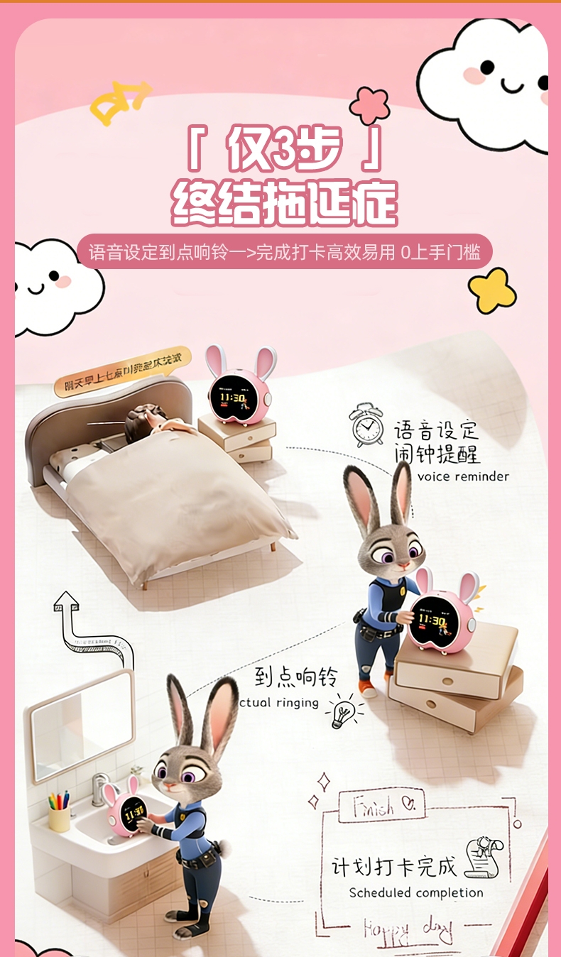 迪士尼 AI智能闹钟时钟蓝牙音箱学习机YG-90