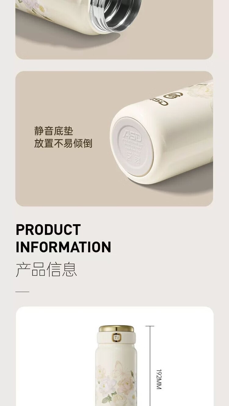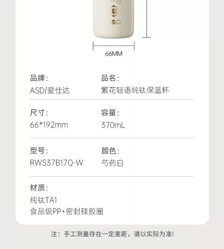 爱仕达 繁花轻语纯钛保温杯370mLRWS37B17Q-W