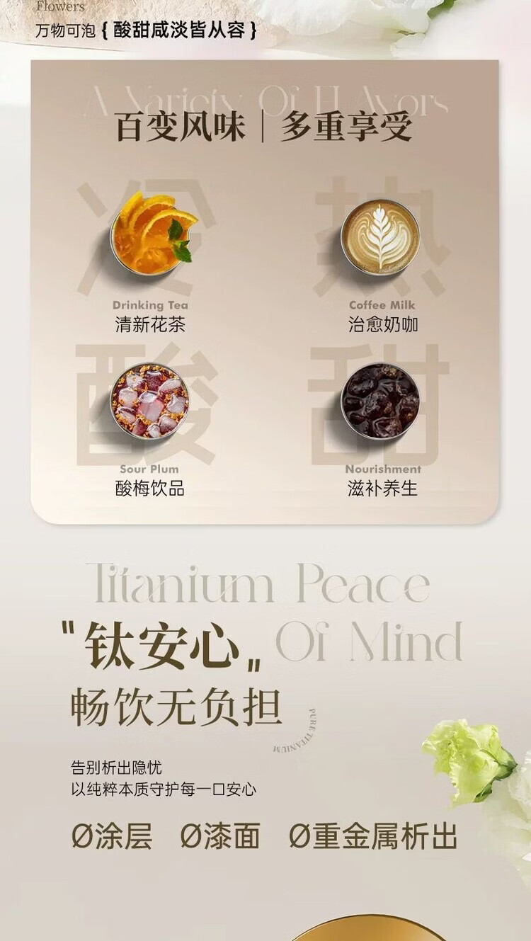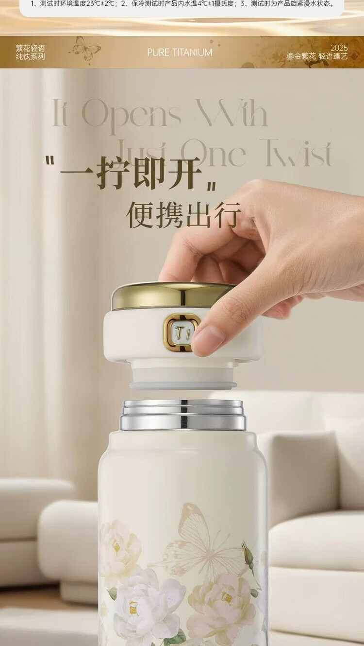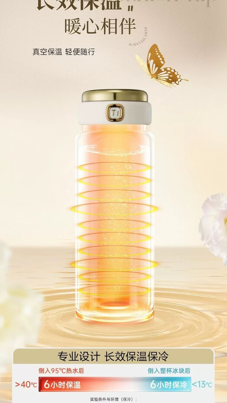 纯钛内胆 高纯度TA1钛材质;内钛盖设计;保温保冷,外出必备神器