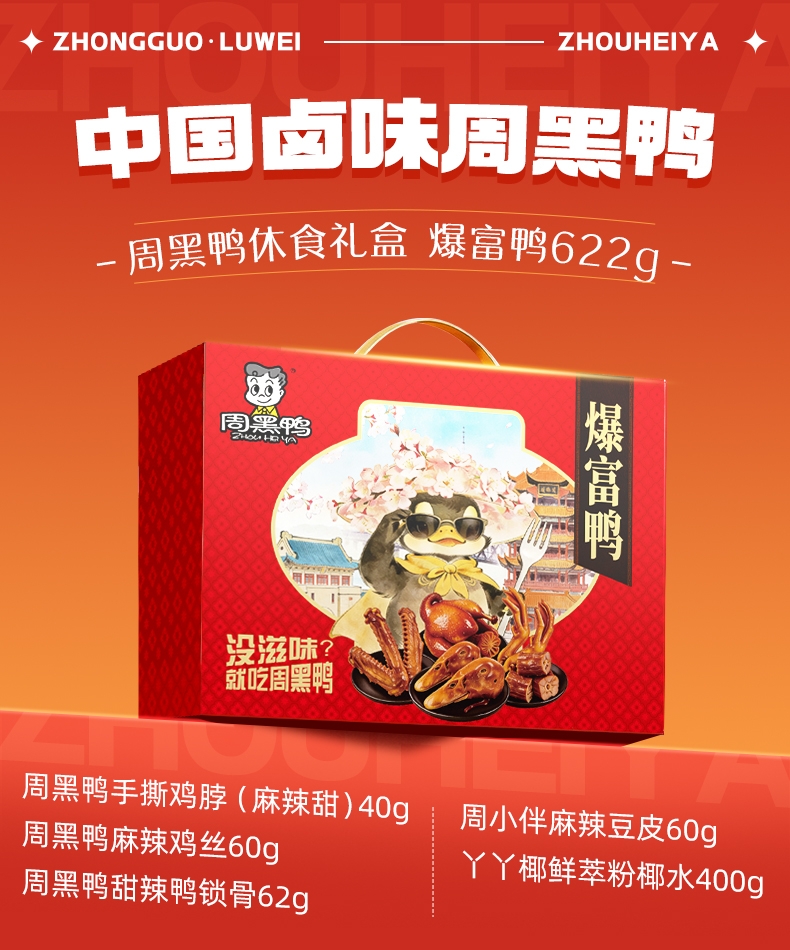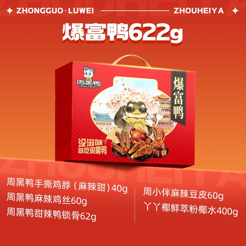 周黑鸭 零食礼盒622g爆富鸭