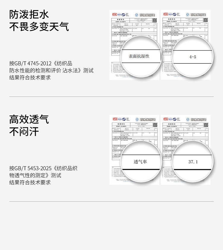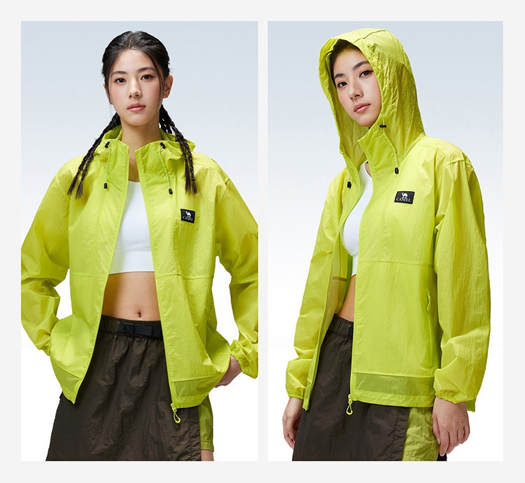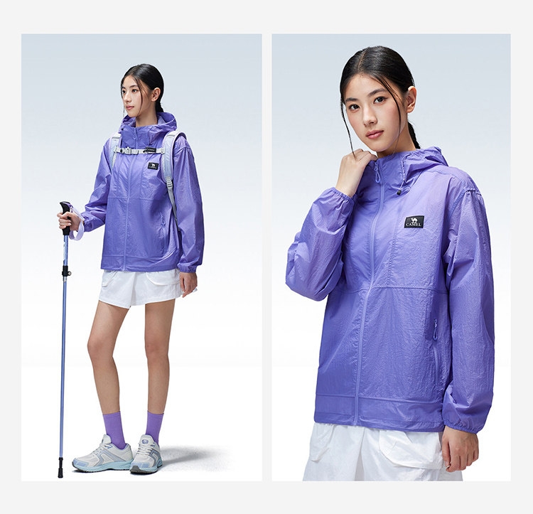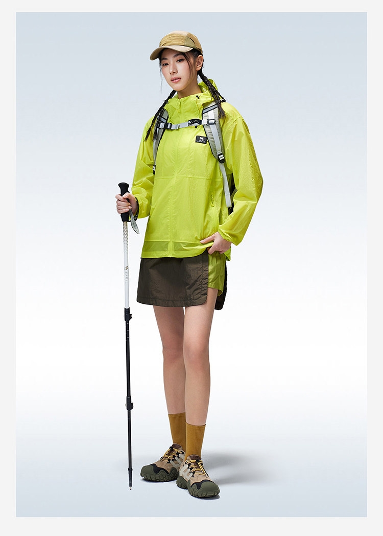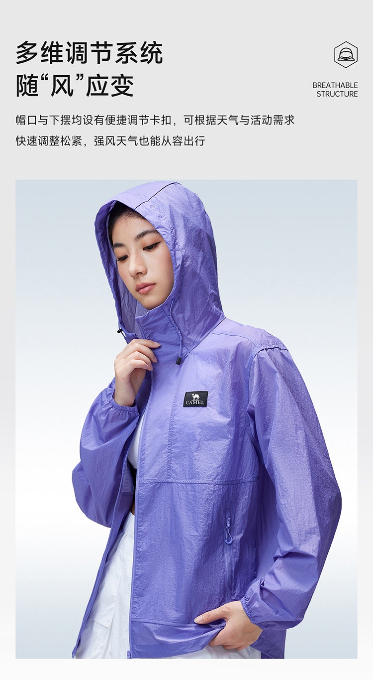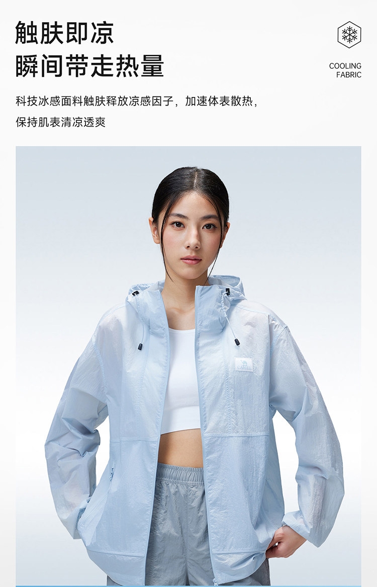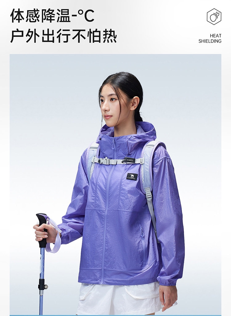 多维科技矩阵从容夏日 清凉出行;面料经防晒科技处理,具备长效抵御紫外线性能;4-5级防泼水,小雨突袭也从容