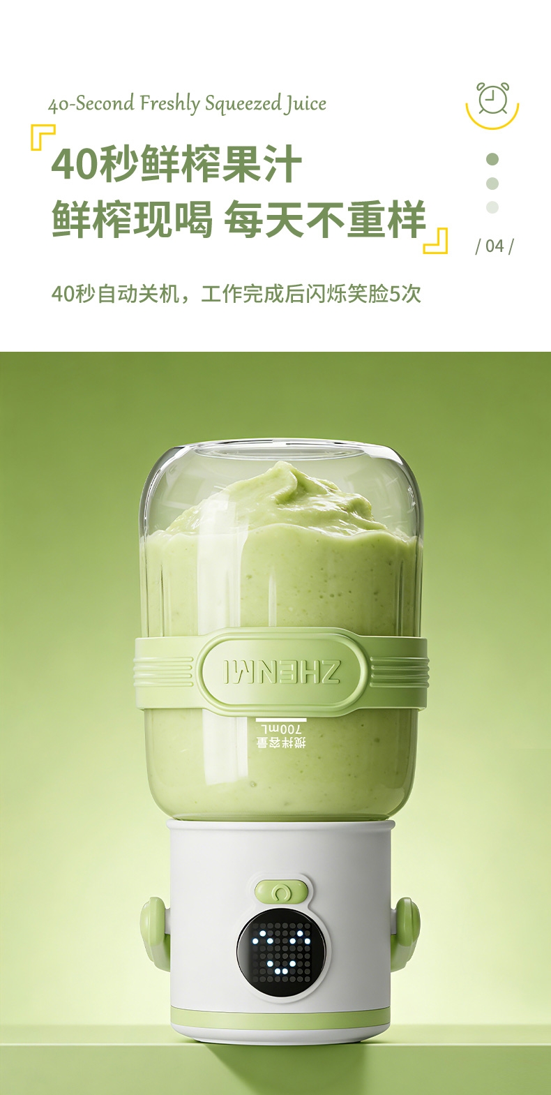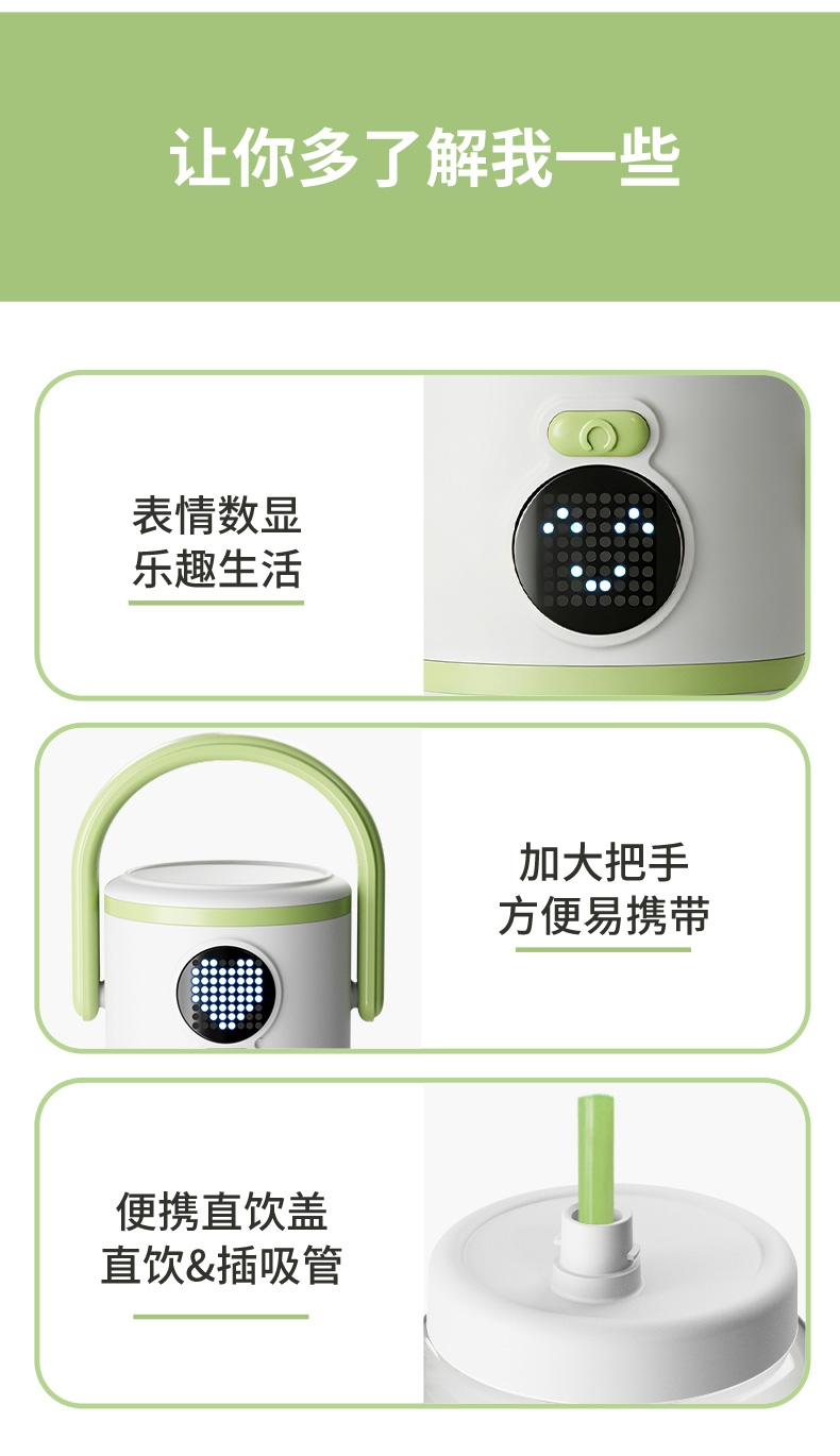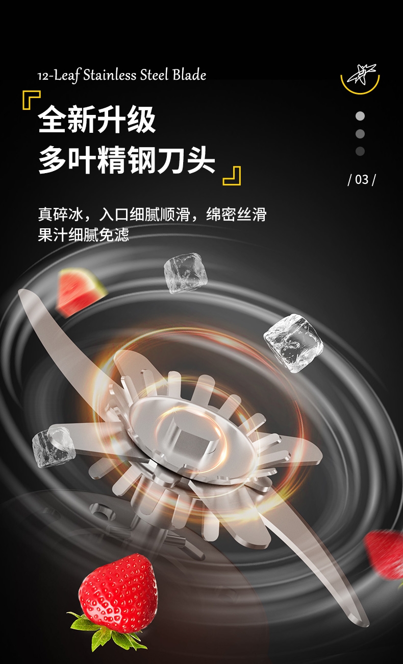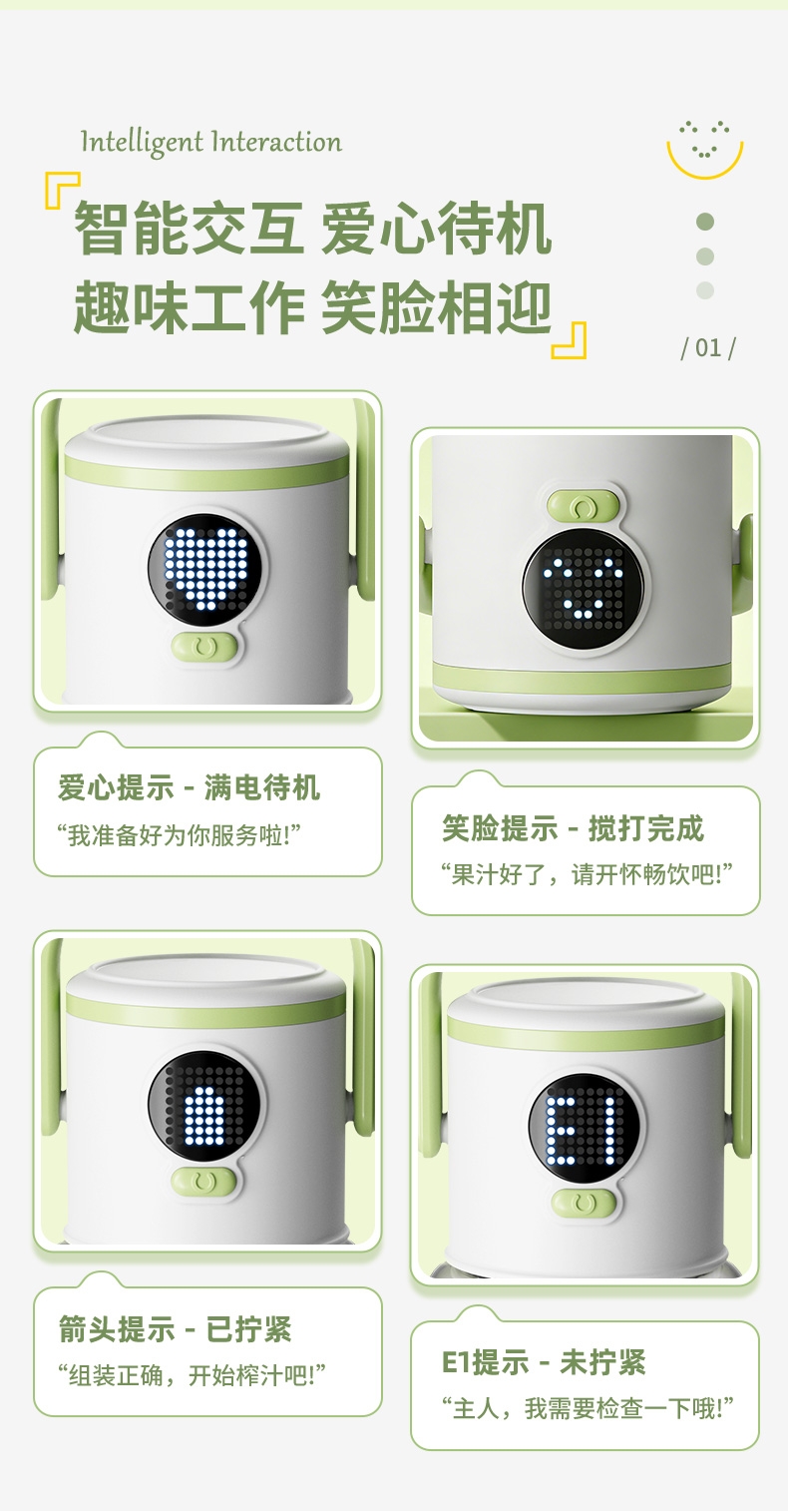 全新升级12叶304不锈钢刀头;趣味工作,笑脸相迎,灵动搅拌,哭脸故障提示;三款材质可选标准PP/Tritan材质/玻璃款材质