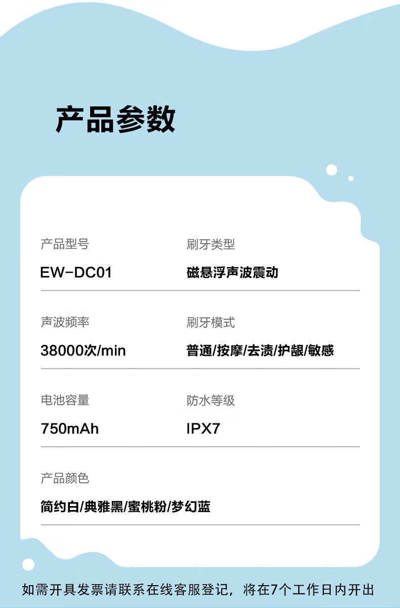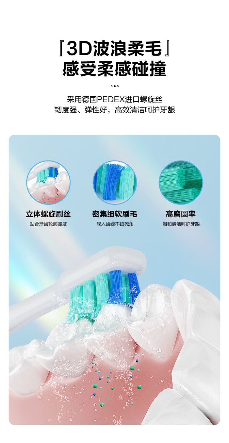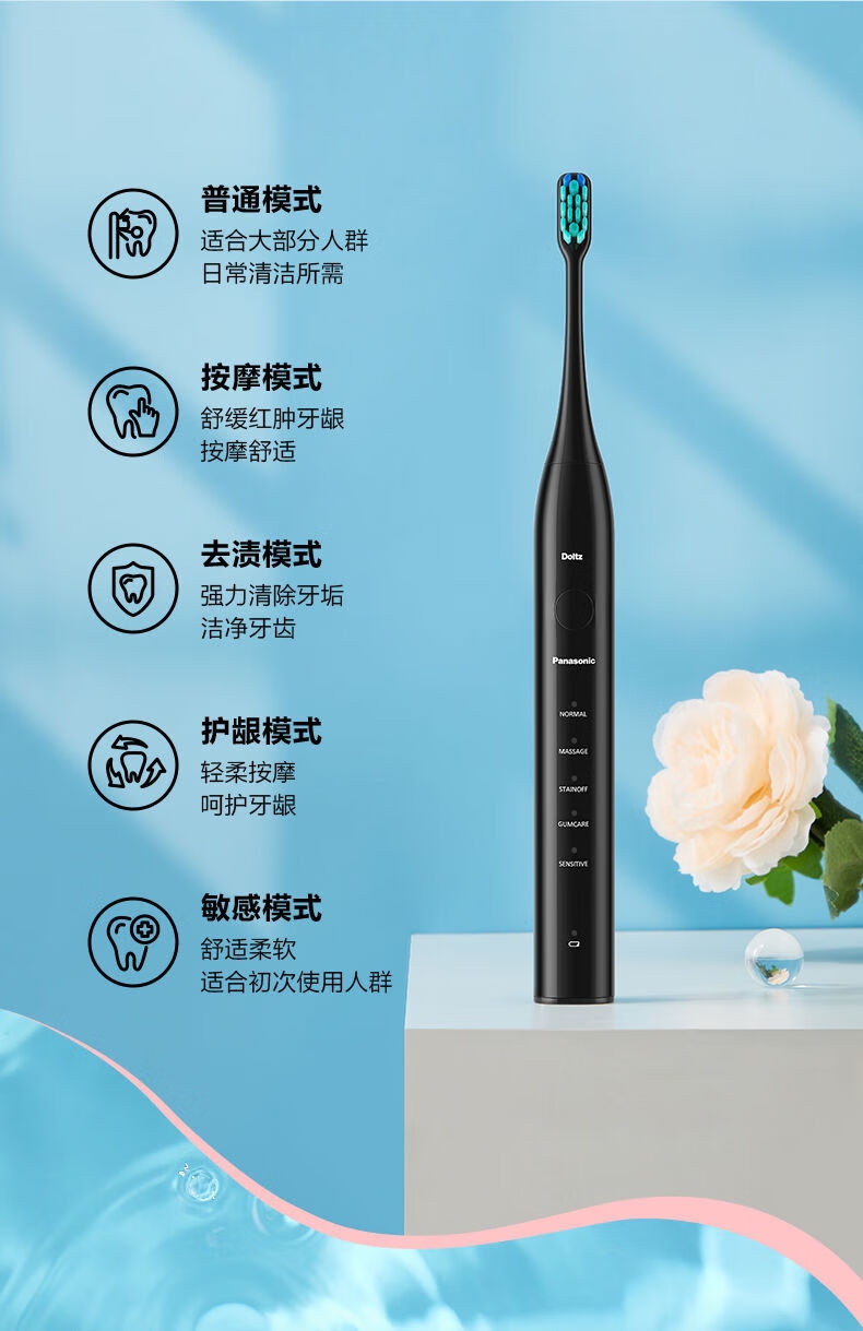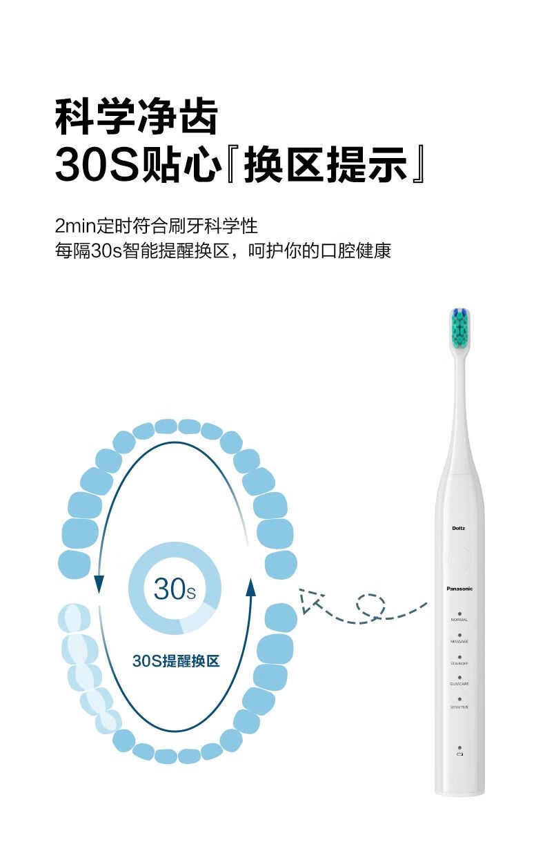 磁悬浮声波技术,清洁同时不伤牙,约38000转/分;5种洁齿模式,轻松应对各种问题;充满一次可用30天+,方向出差旅行