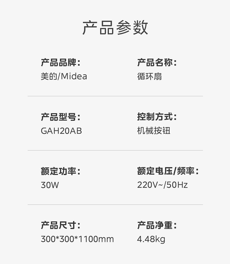 美的 循环扇跌倒断电角度可调GAH20AB