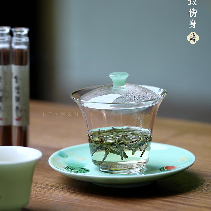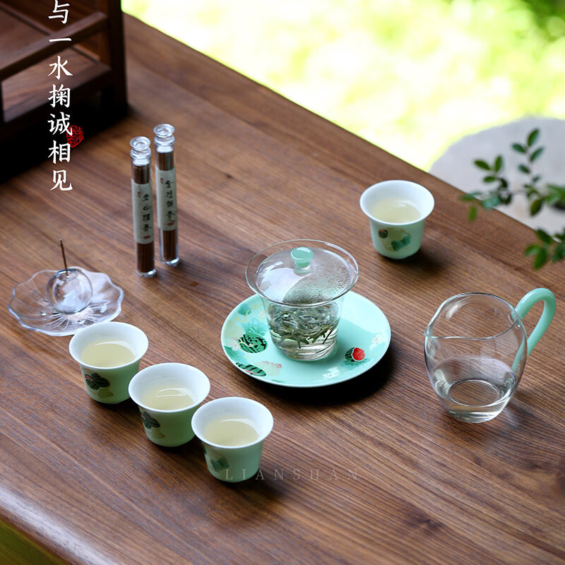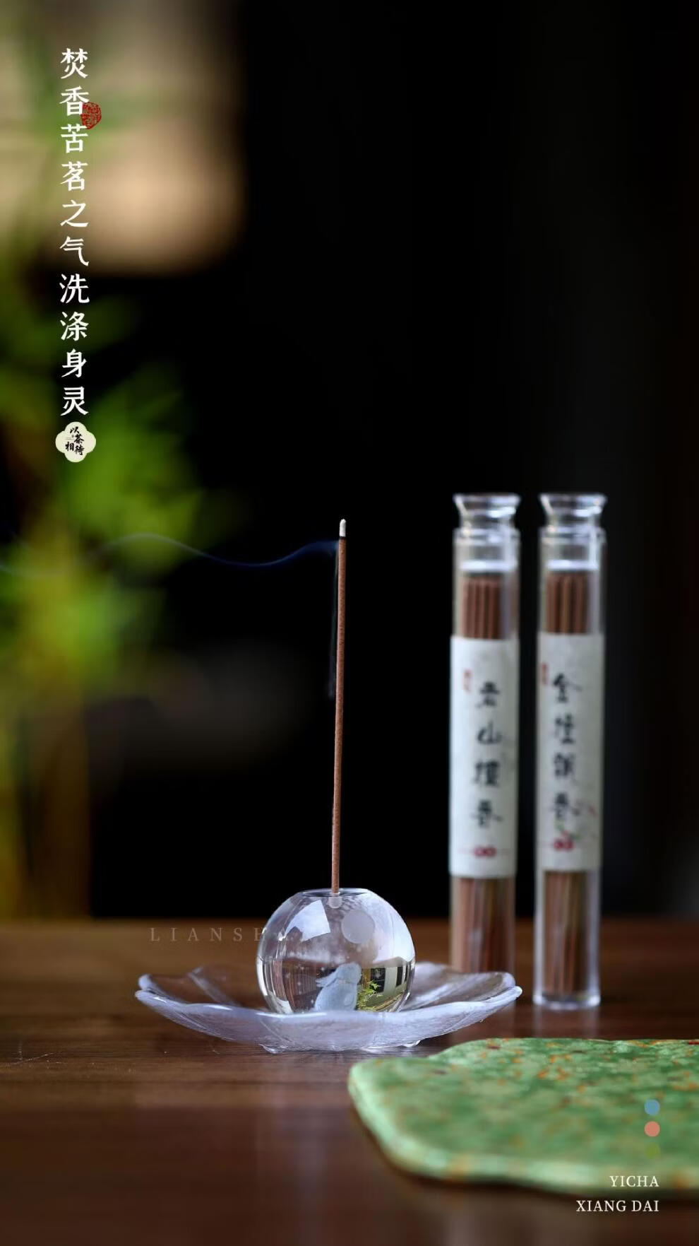 茗然说 玻璃盖碗茶杯线香香器茶具套装CJ0010