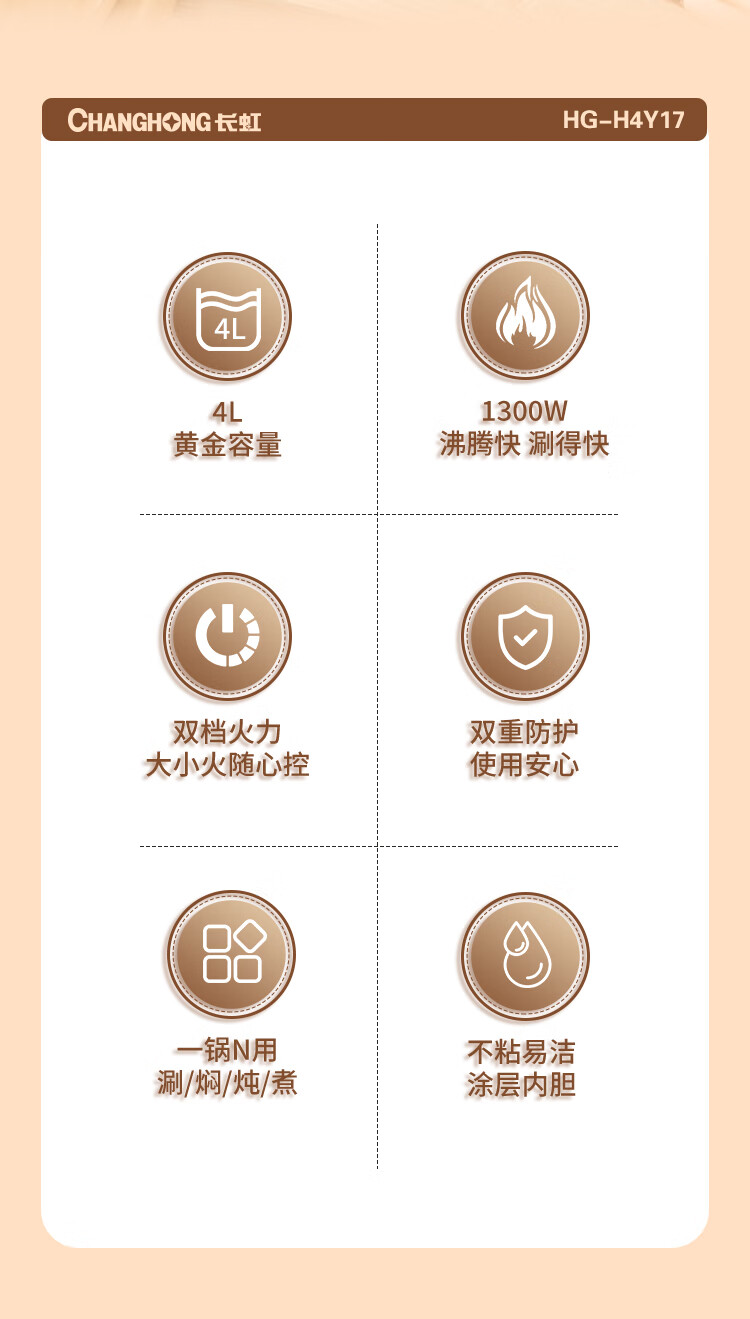长虹 电火锅多功能一体电炒锅家用HG-H4Y17