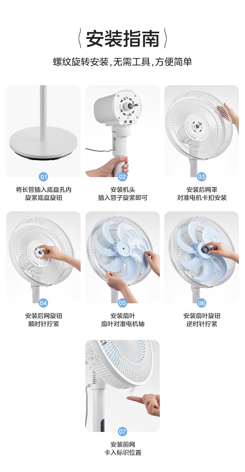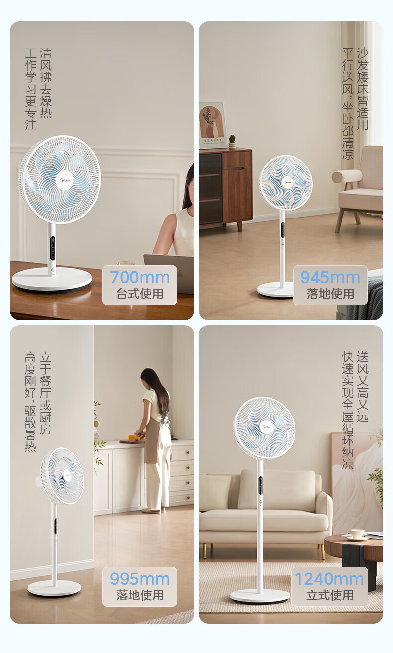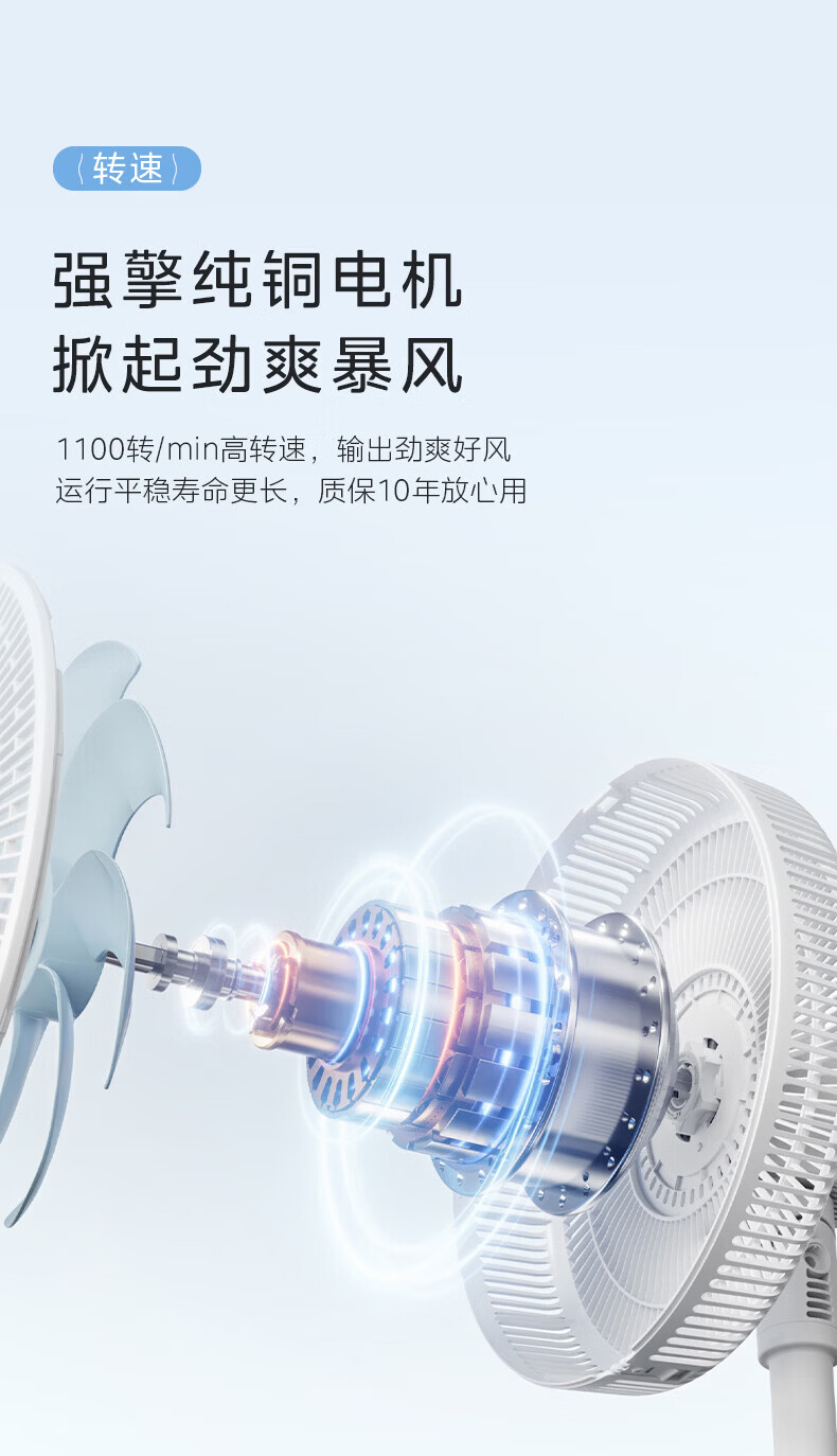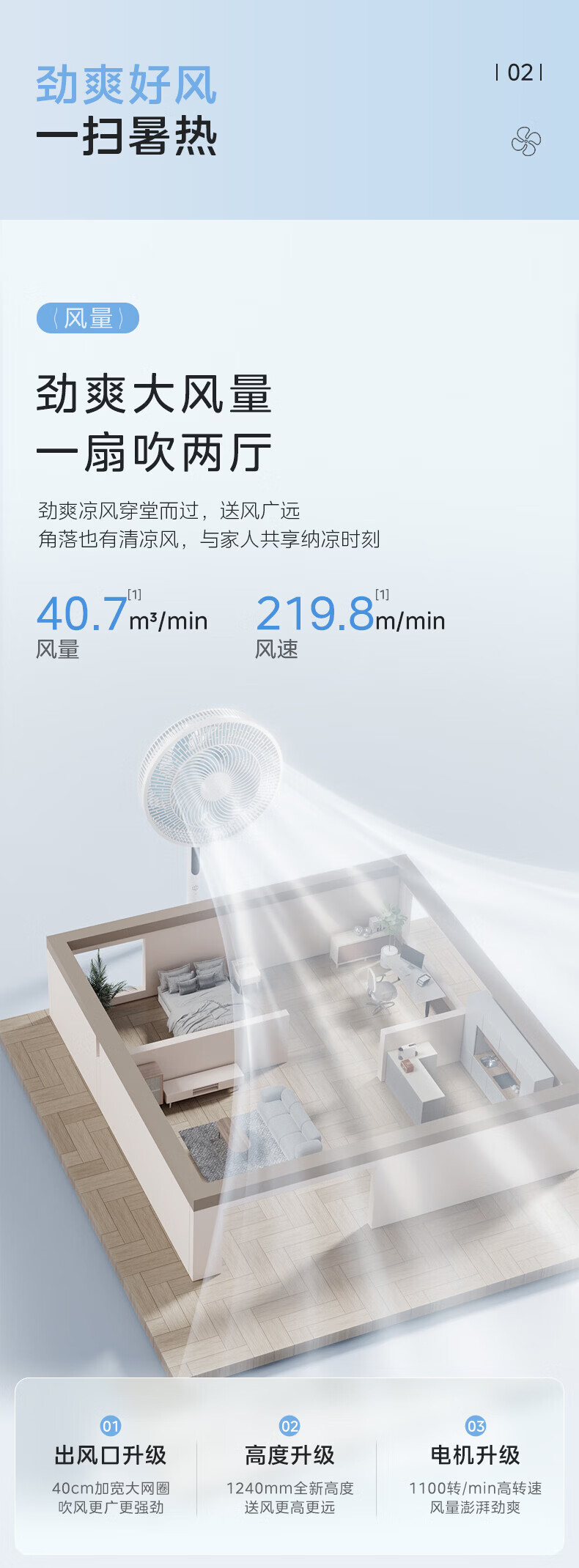 小巧机身,强劲动力;7片风叶,切风细腻;40.4dB(A),安静柔风