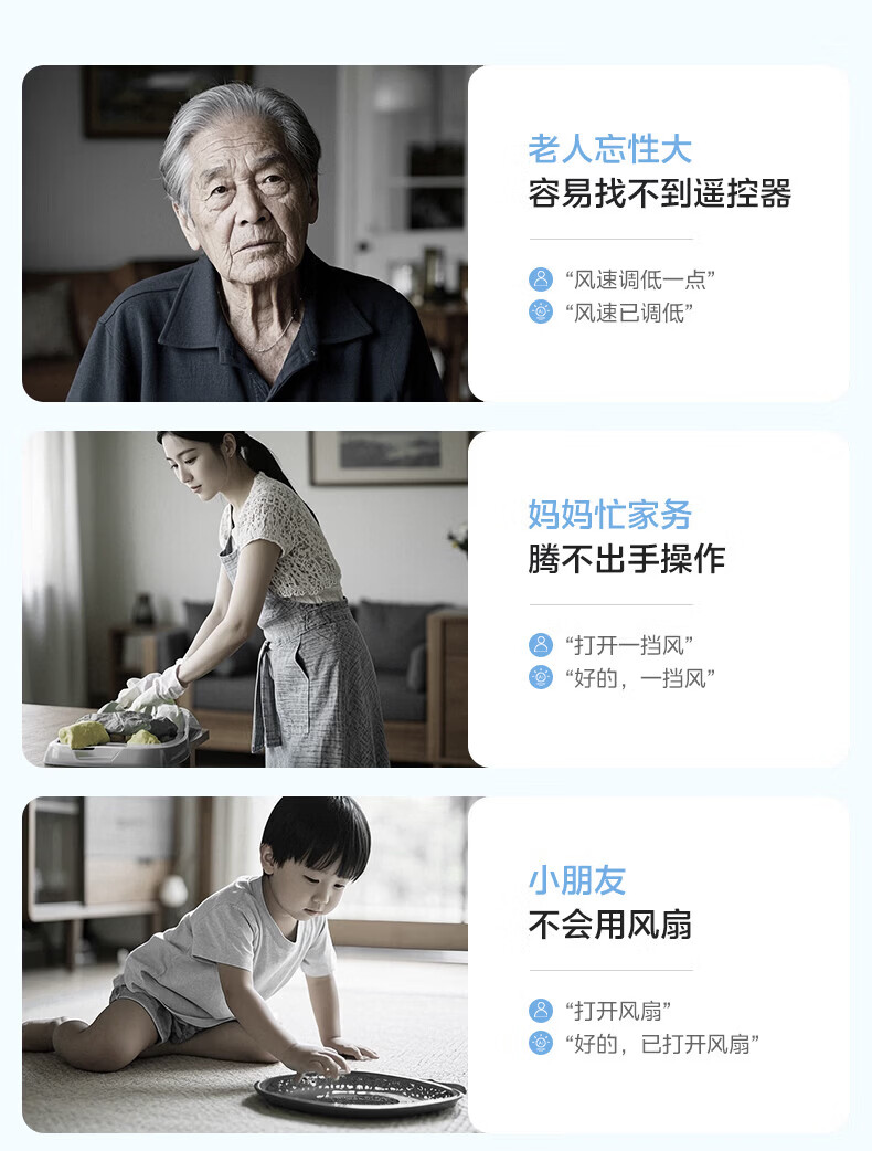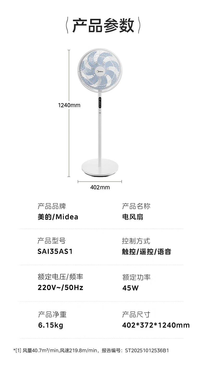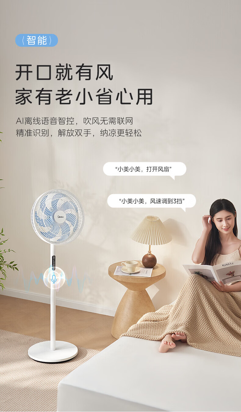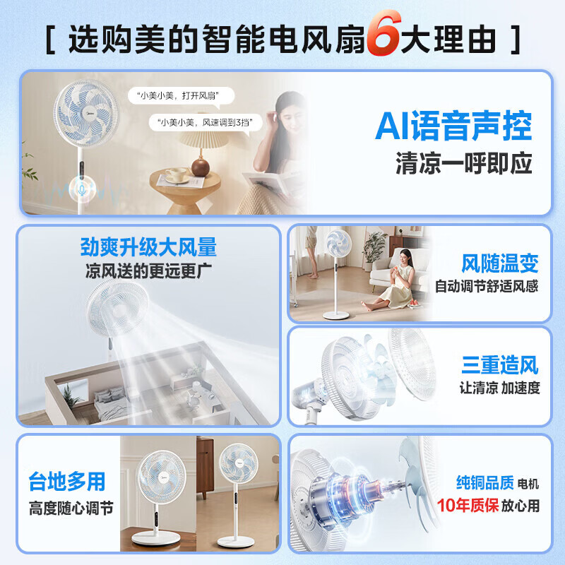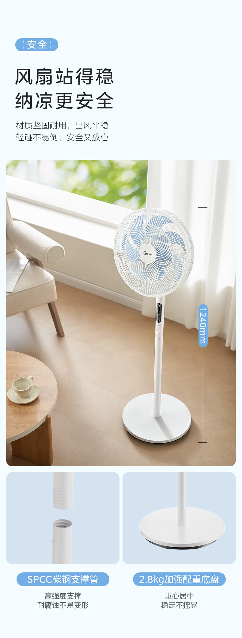 小巧机身,强劲动力;7片风叶,切风细腻;40.4dB(A),安静柔风