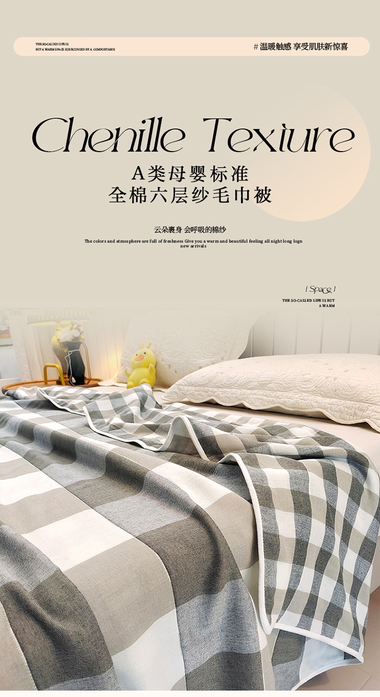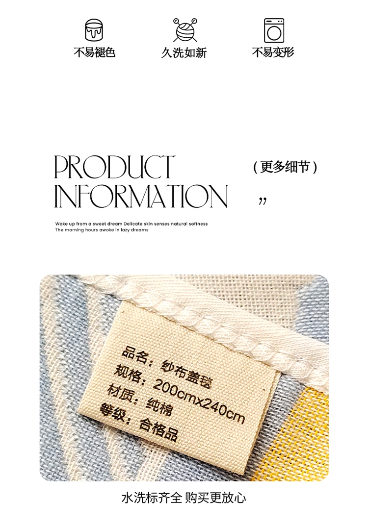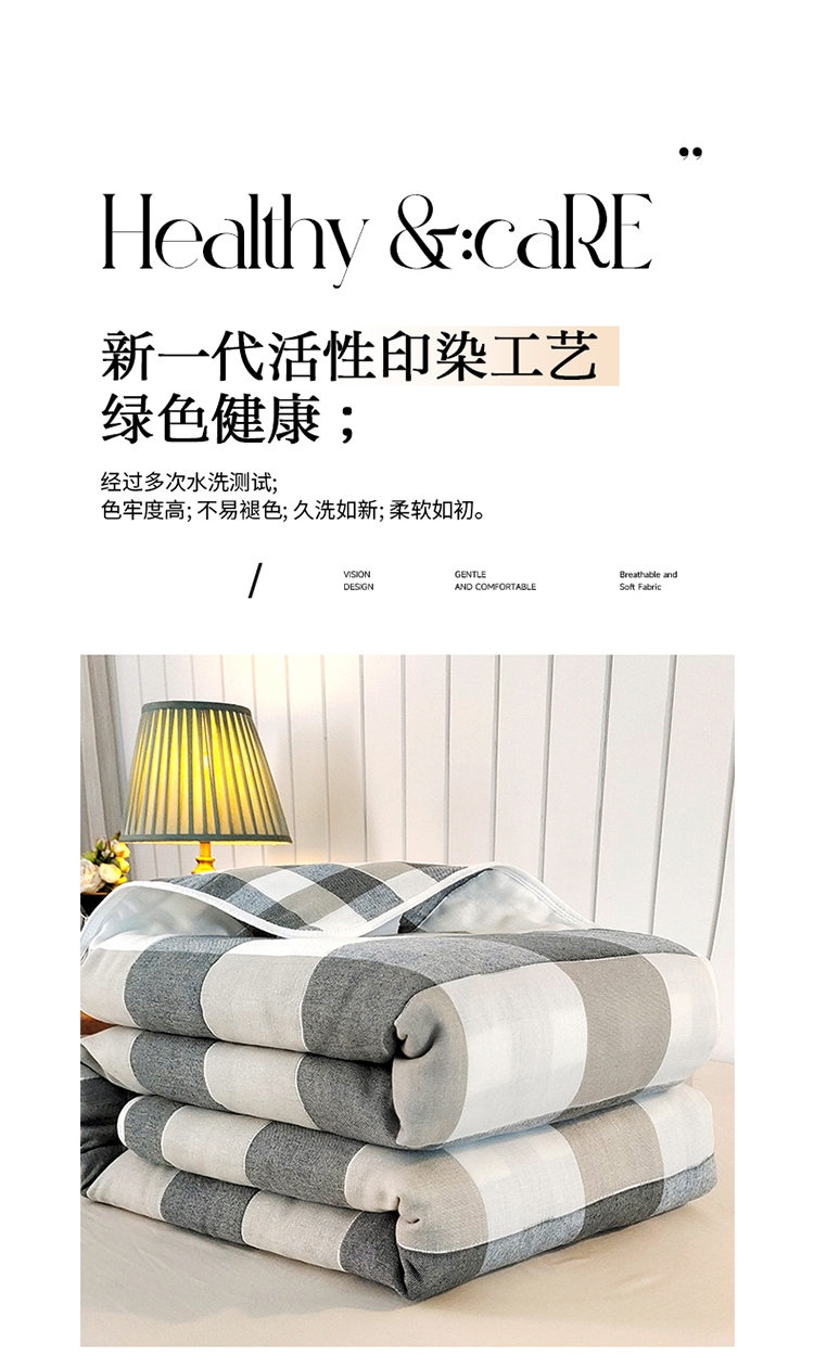 精选优质长绒棉,多层纱布织造,蓬松透气;亲肤不刺激,敏感肌与婴幼儿都能安心使用;蜂窝状纱布结构,吸湿快干,夏夜盖着不粘身