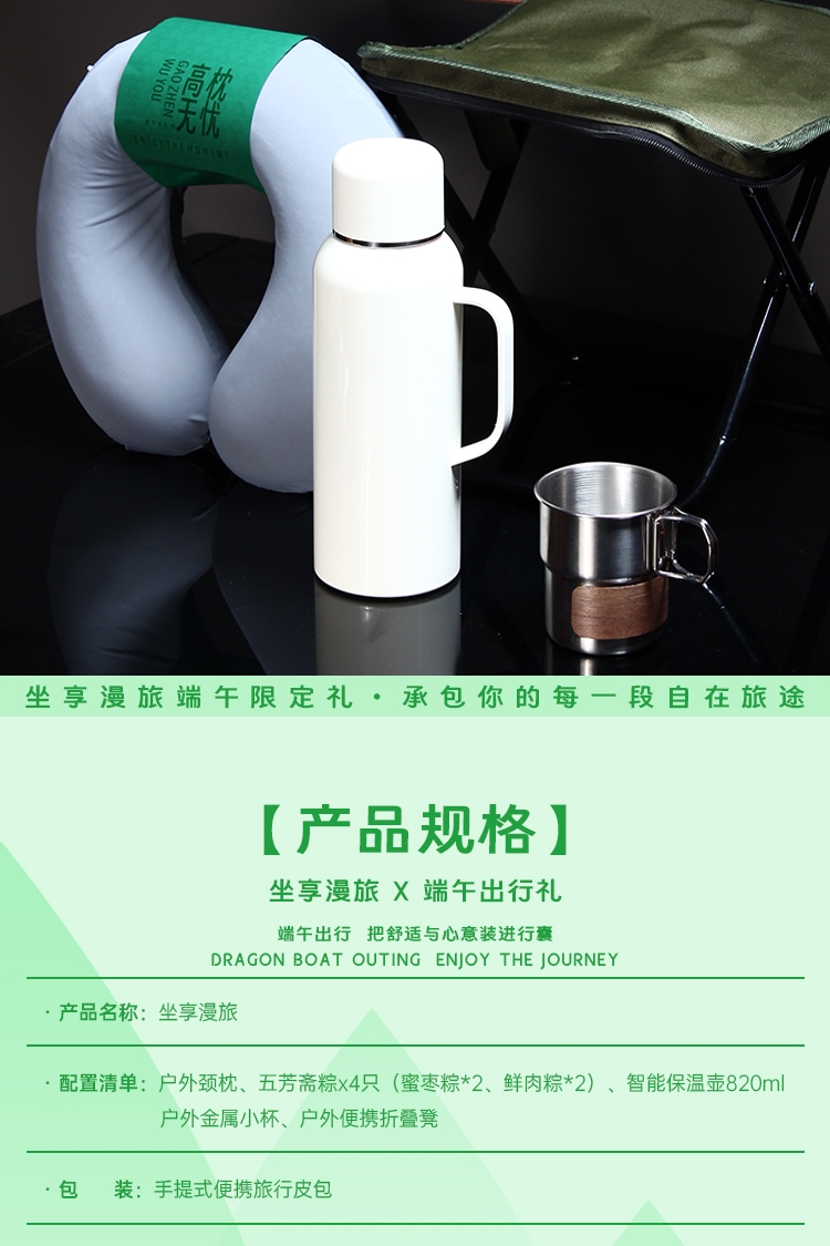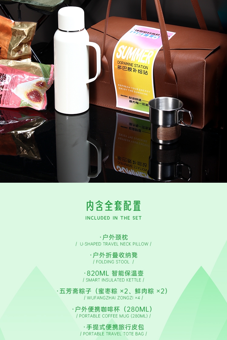 端午旅行礼盒 五芳斋粽 + 保温壶折叠凳套装;露营伴手礼 便携旅行套装企业福利;端午限定旅行礼 保温壶折叠凳粽子礼包