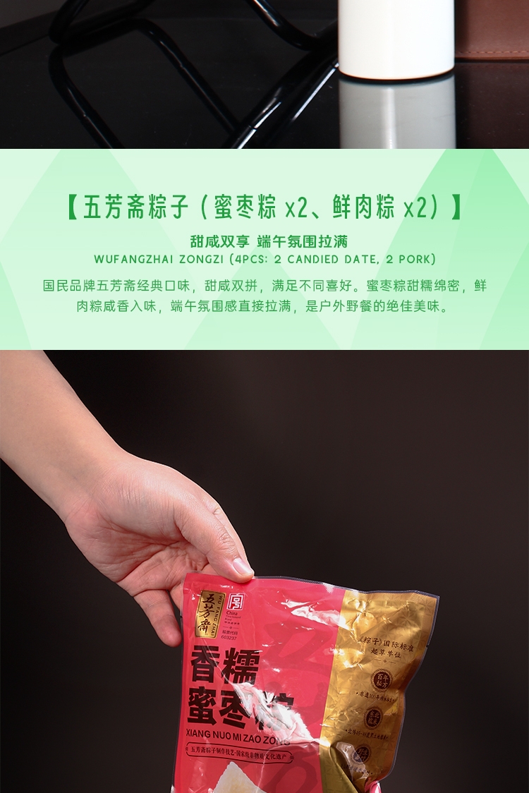 户外颈枕:五芳斋粽x4只(蜜枣粽*2-鲜肉粽*2)