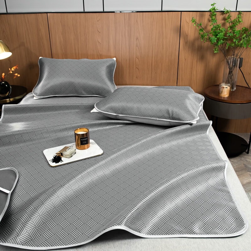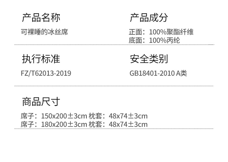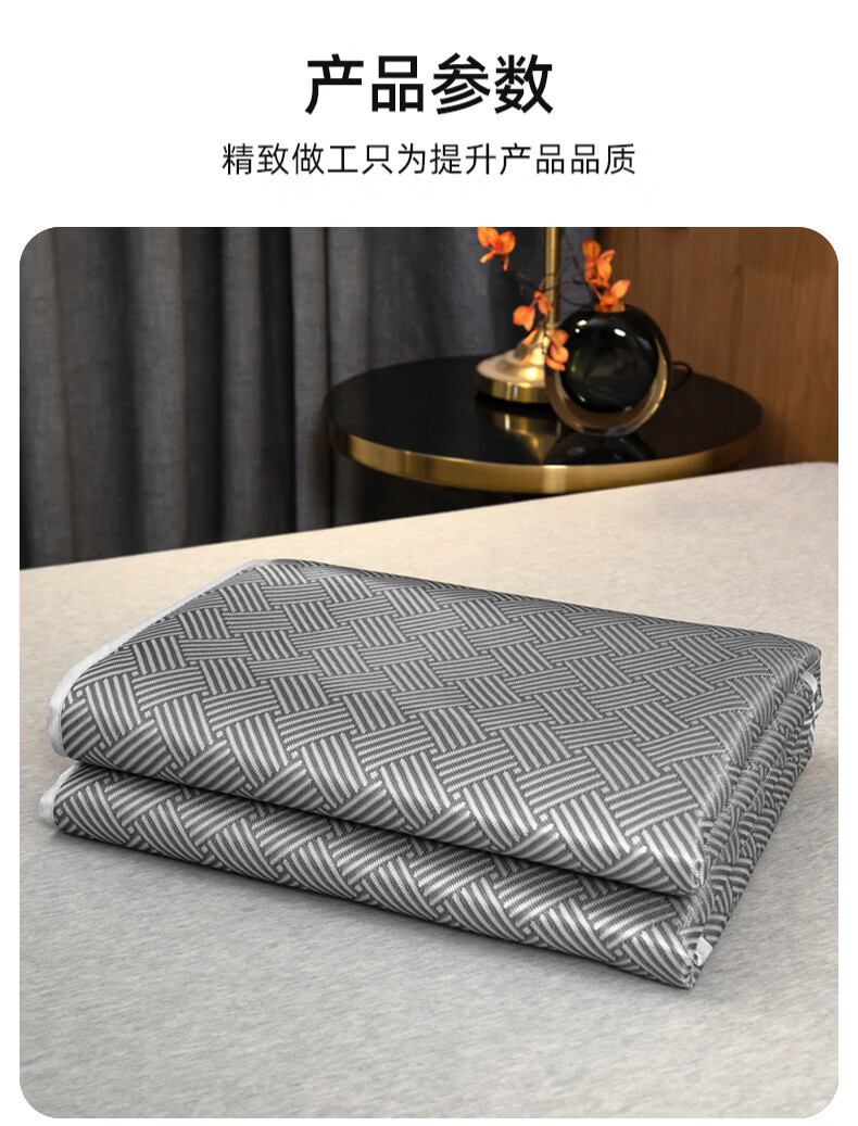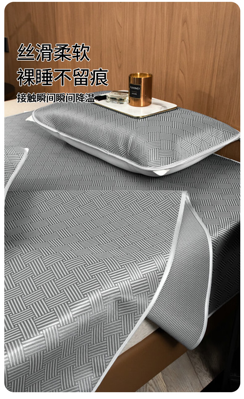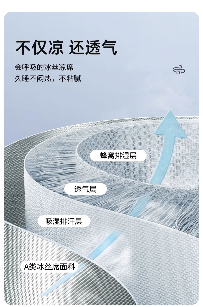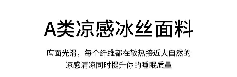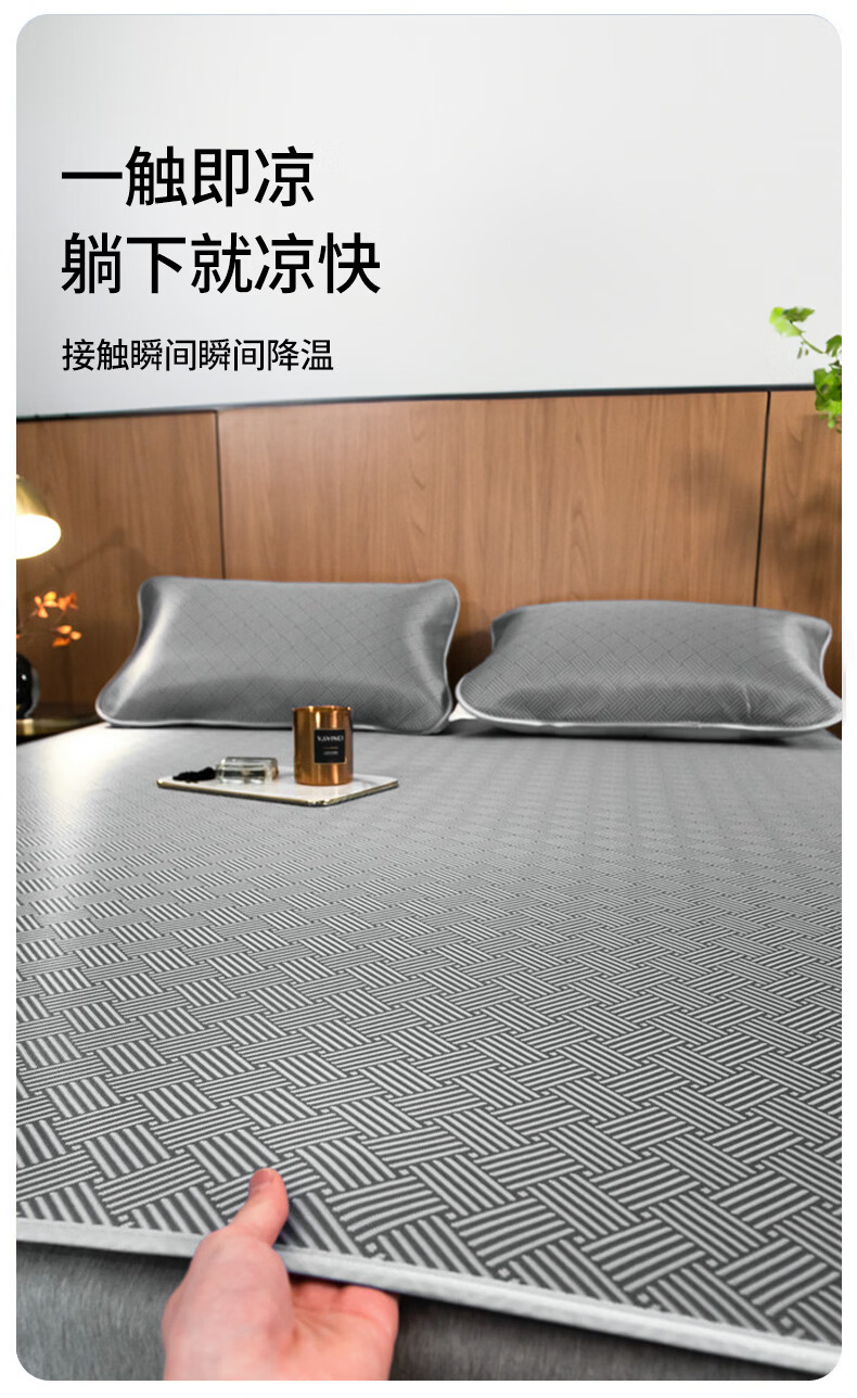 甄选A类凉感冰丝面料,凉而不冰,透气舒爽;防滑绑带设计,防止凉席移位,舒享睡眠;柔软可折叠,方便收纳,节省空间