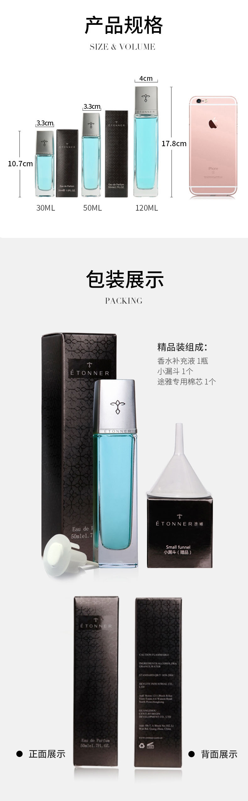 配置清单:120ML香水补充液*1瓶,漏斗*1个,挥发棉芯*1个