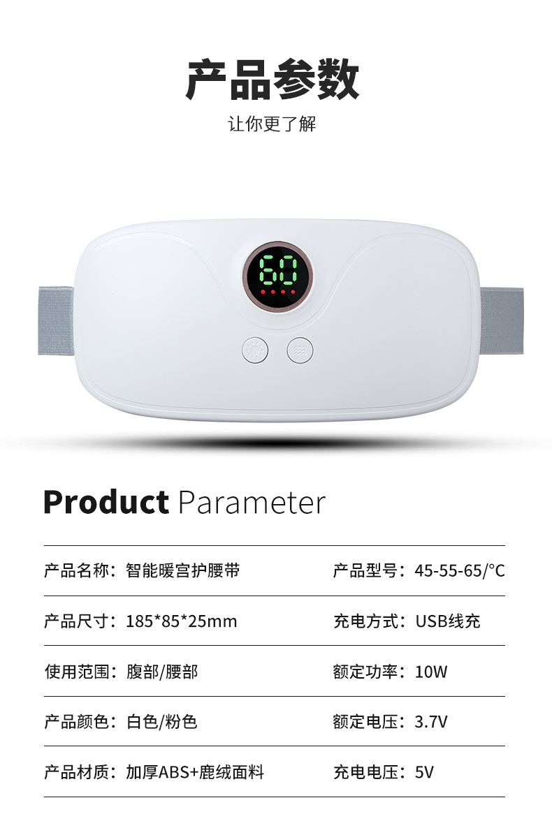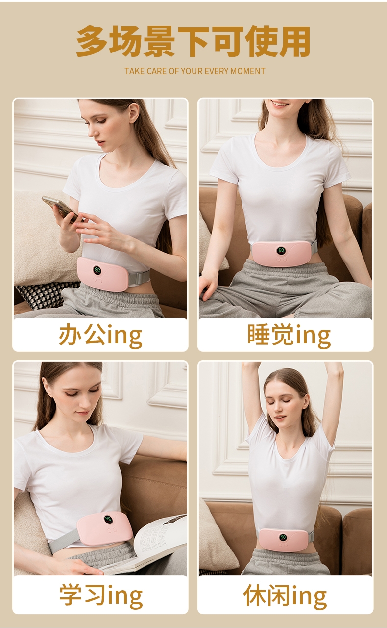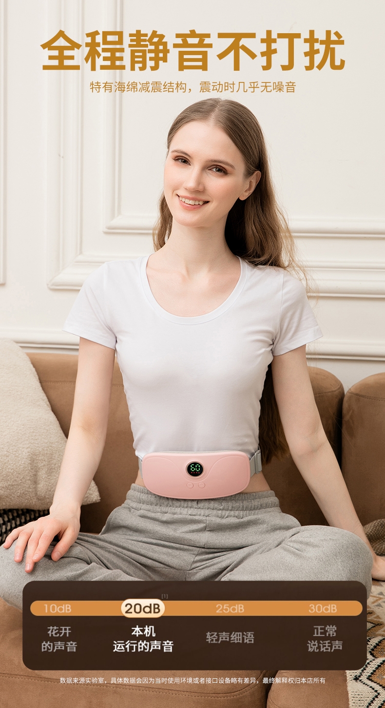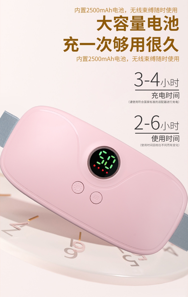 3档震动按摩,4档智能调温;可伸缩绑带,适合各类人群;显示屏显示温度