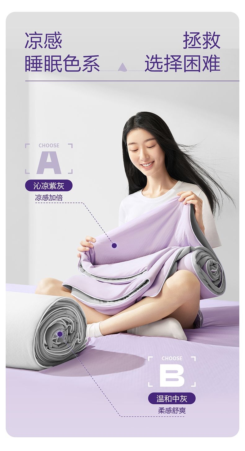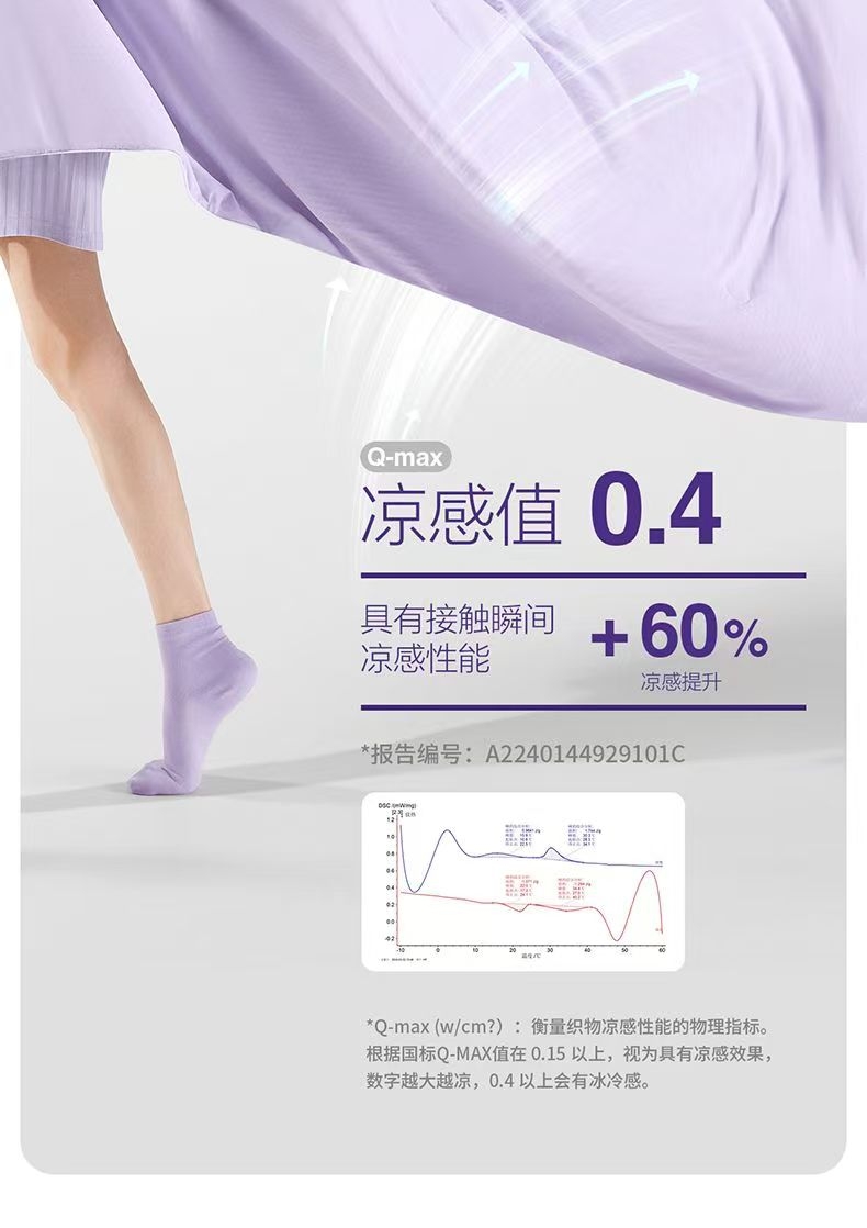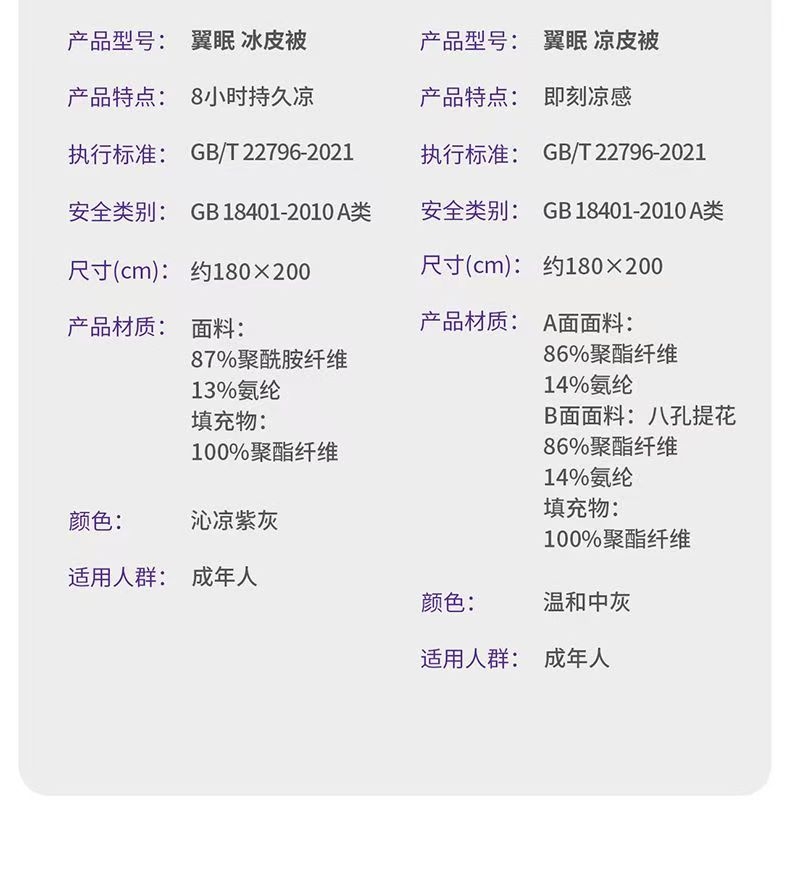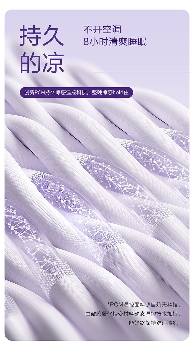 8小时持久凉,专研芯体防钻毛;不起球 ,双c检测A类品质;双面凉感
