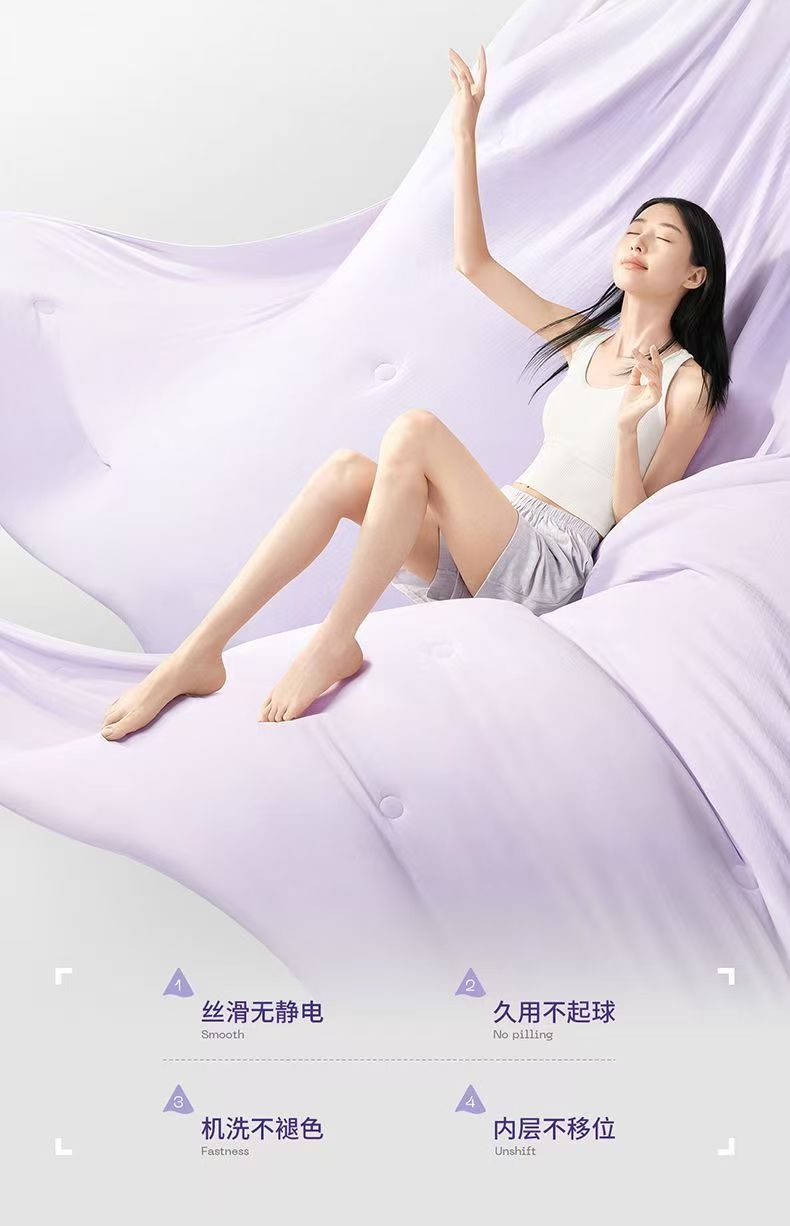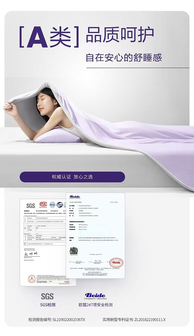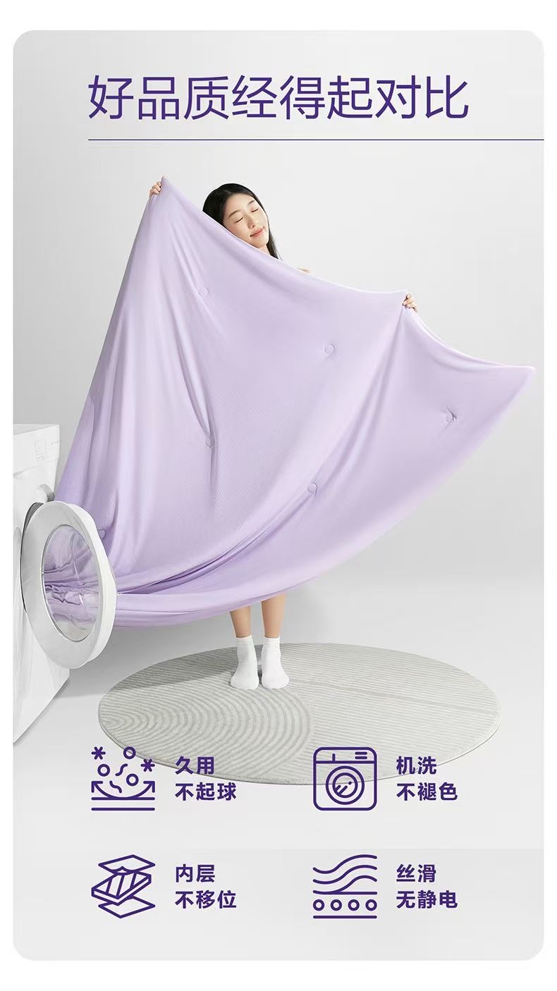 8小时持久凉,专研芯体防钻毛;不起球 ,双c检测A类品质;双面凉感