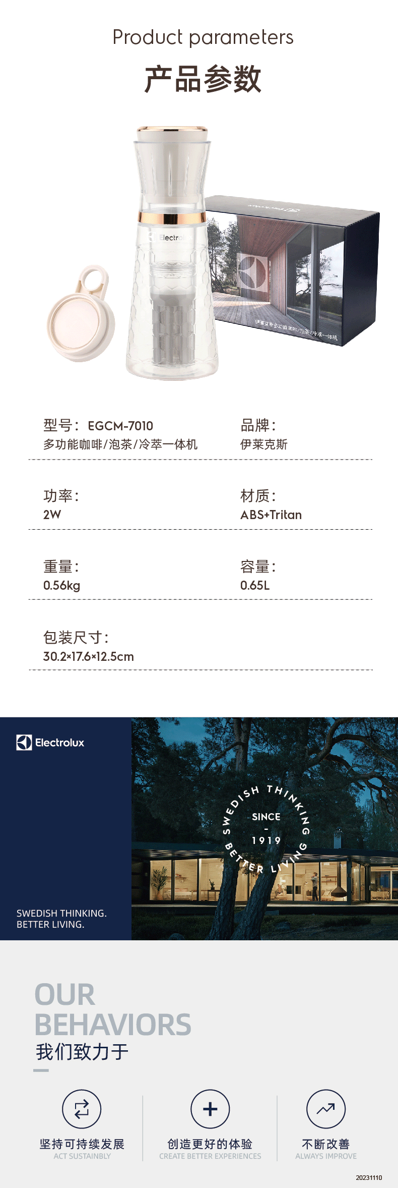 伊莱克斯 多功能咖啡泡茶冷萃一体机EGCM-7010