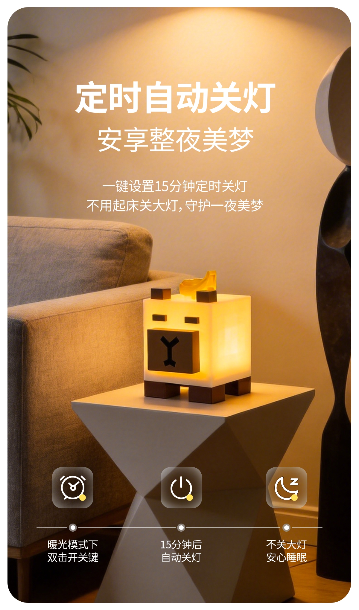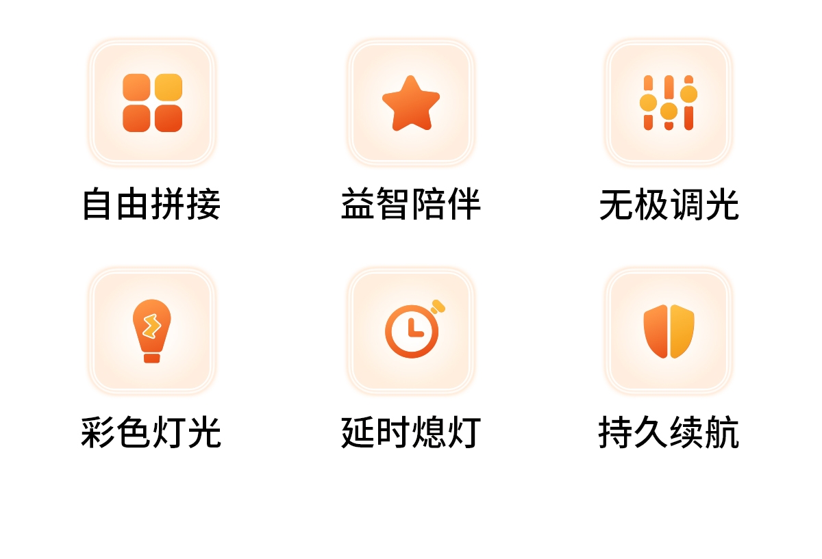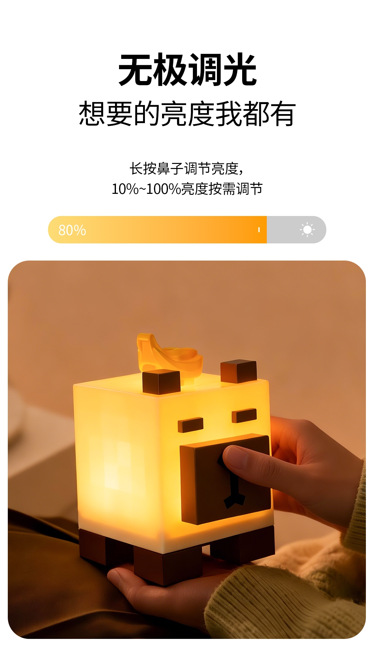 拼插玩乐点亮童趣,柔和灯光守护安睡;柔光护眼,无极调光,营造专属治愈角落;既能当夜灯照明,又能当积木玩