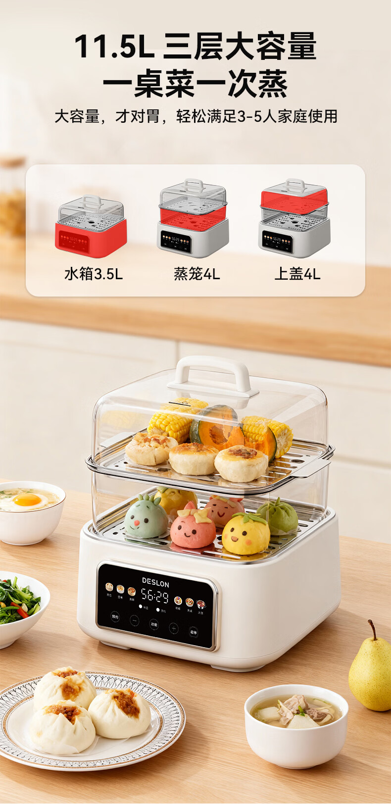 容量:火锅容量:3.5L 蒸笼容量:4L +4L
