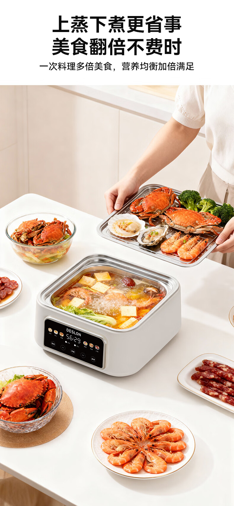 德世朗 不锈钢多功能电蒸锅DDQ-HG125T