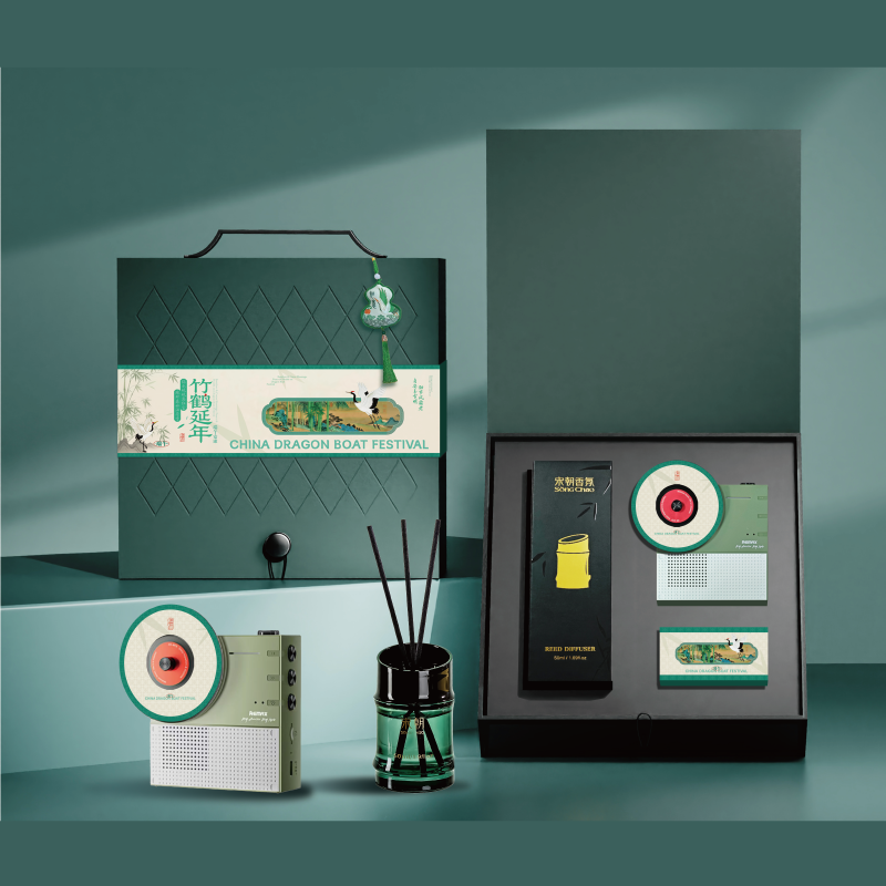 礼盒配置:手提高端皮盒*1、宋朝竹节香薰*1 竹鹤香包*1 remax旋转蓝牙音响*1