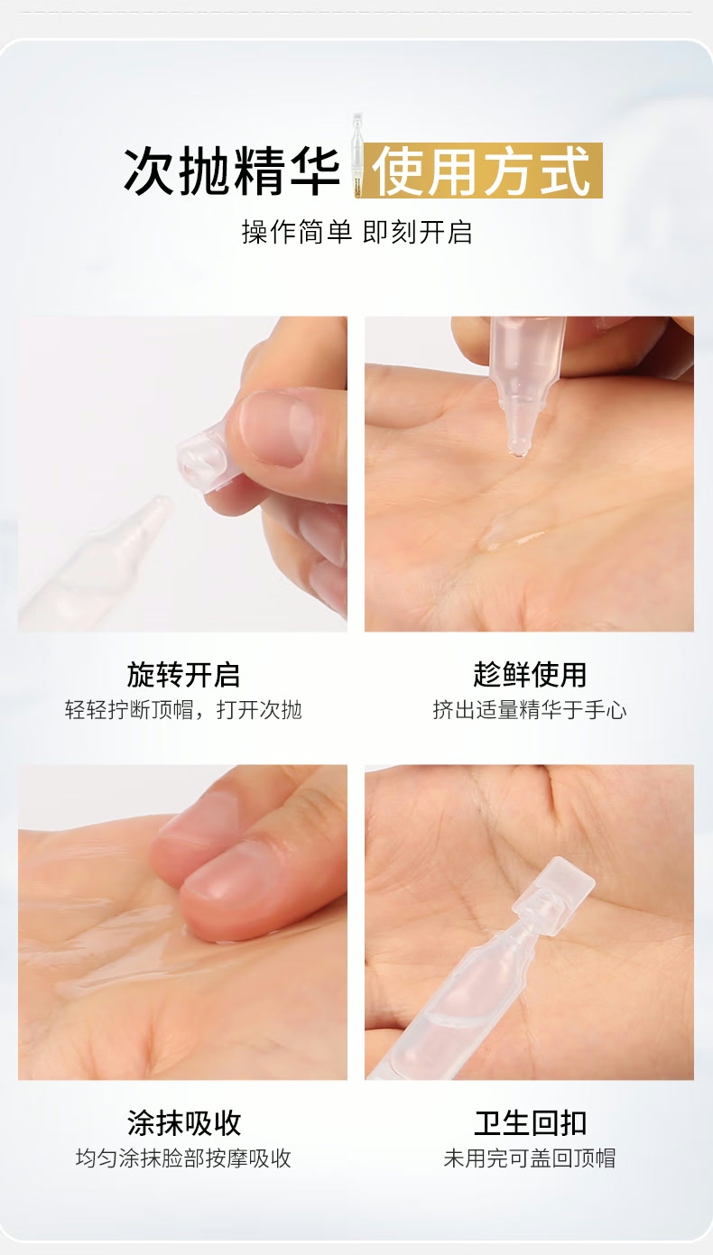 五件套:弹嫩紧致,淡纹修护,改善粗糙;次抛精华:深层补水,修护维稳,便携易使用;防晒隔离:高倍防护,隔离提亮,轻薄不闷