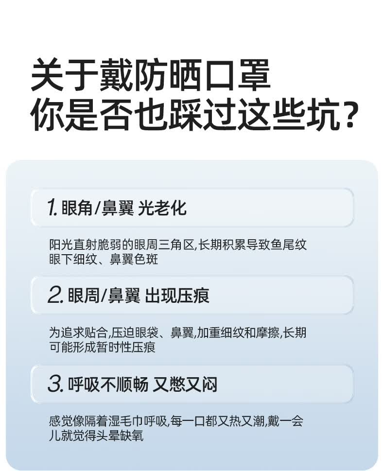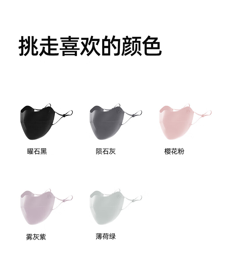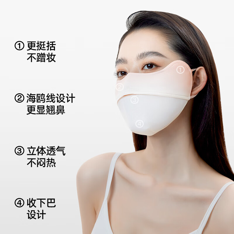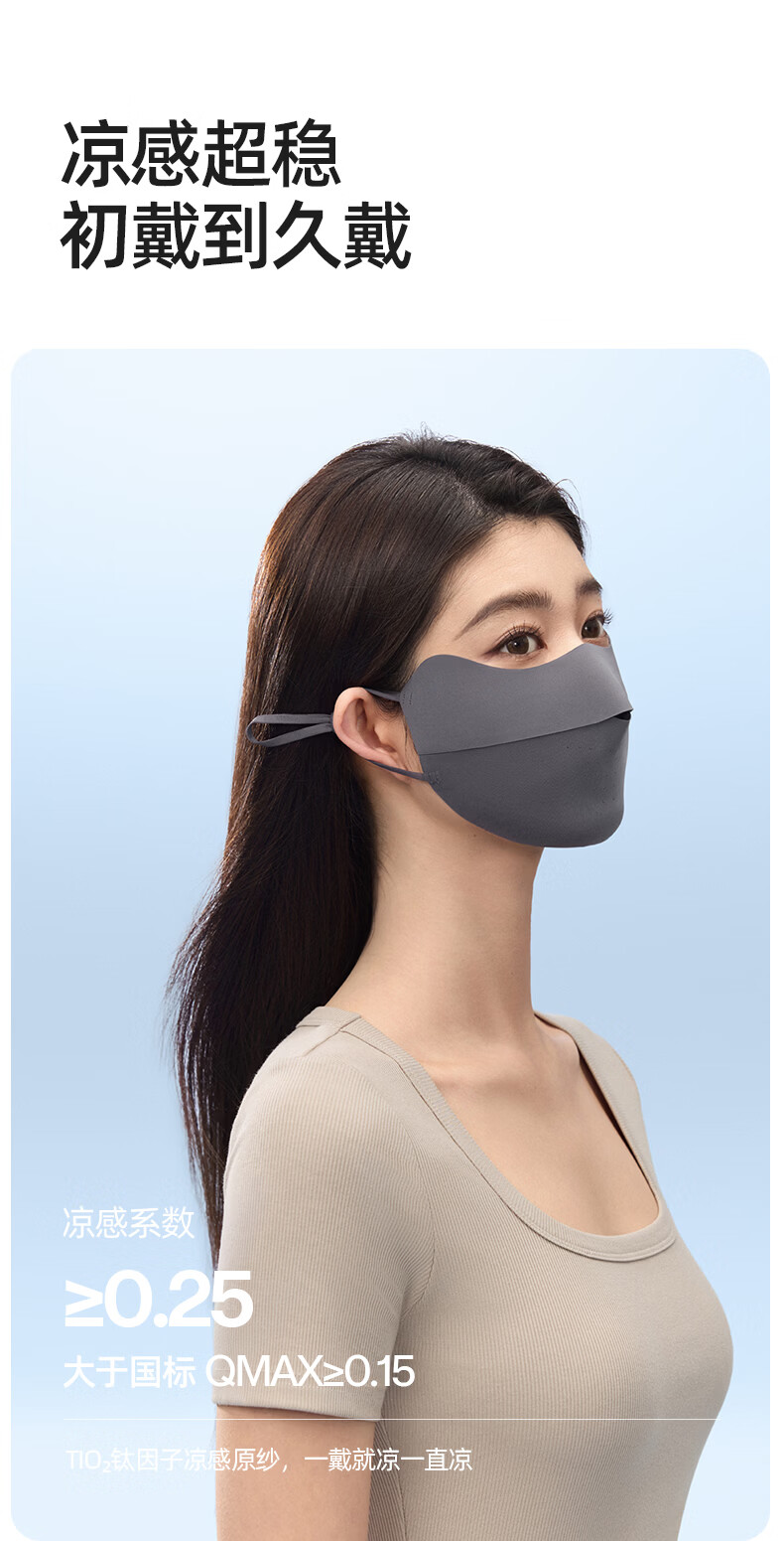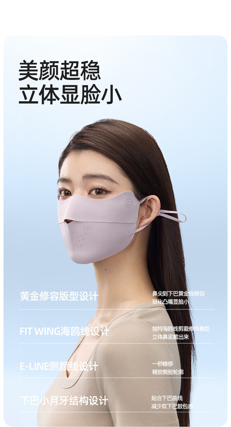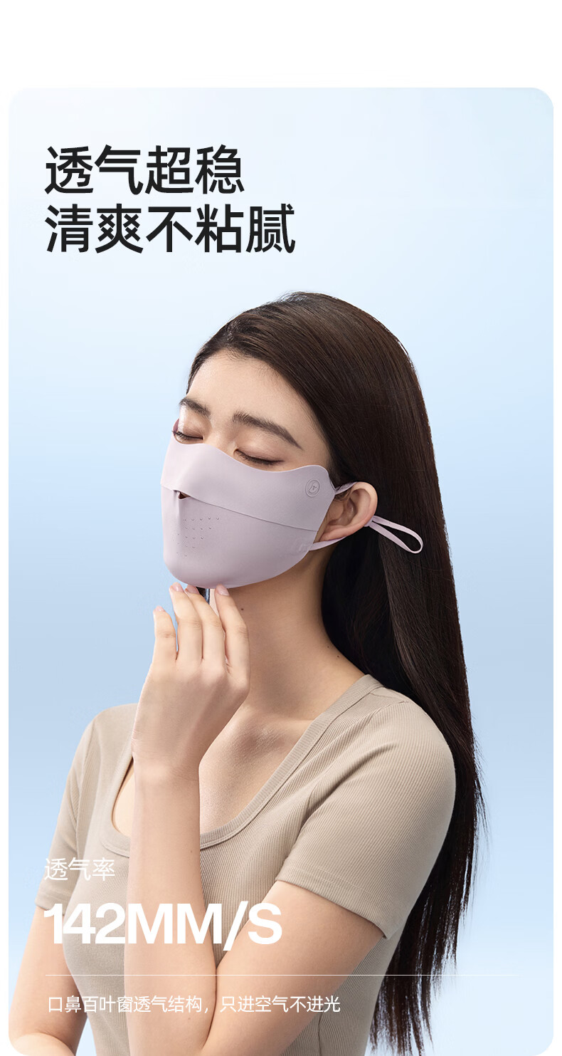 Airloop凉感系列,超轻薄防晒面罩;遮蔽丝技术,全波段防晒,减少日晒光肌肤老化;加高眼角防护,防晒抗老化更全面