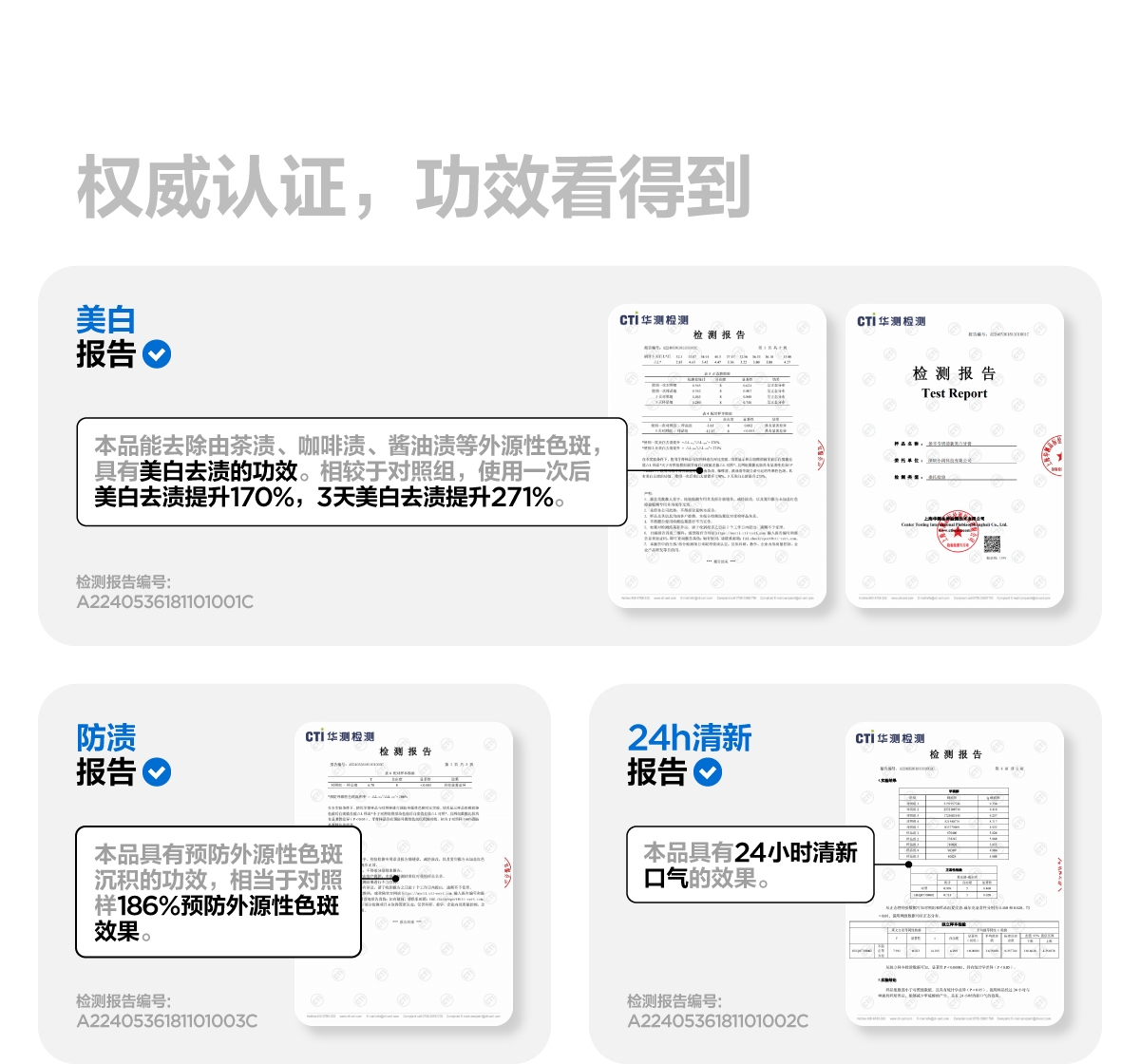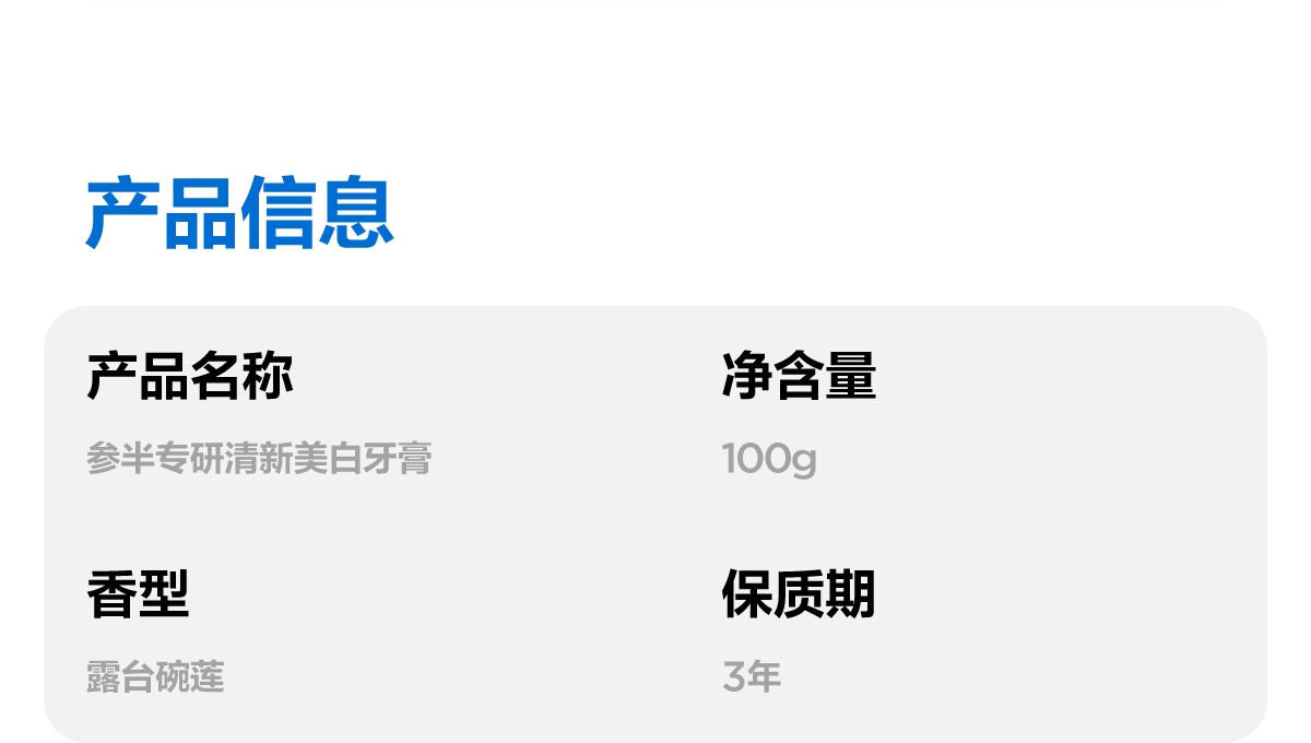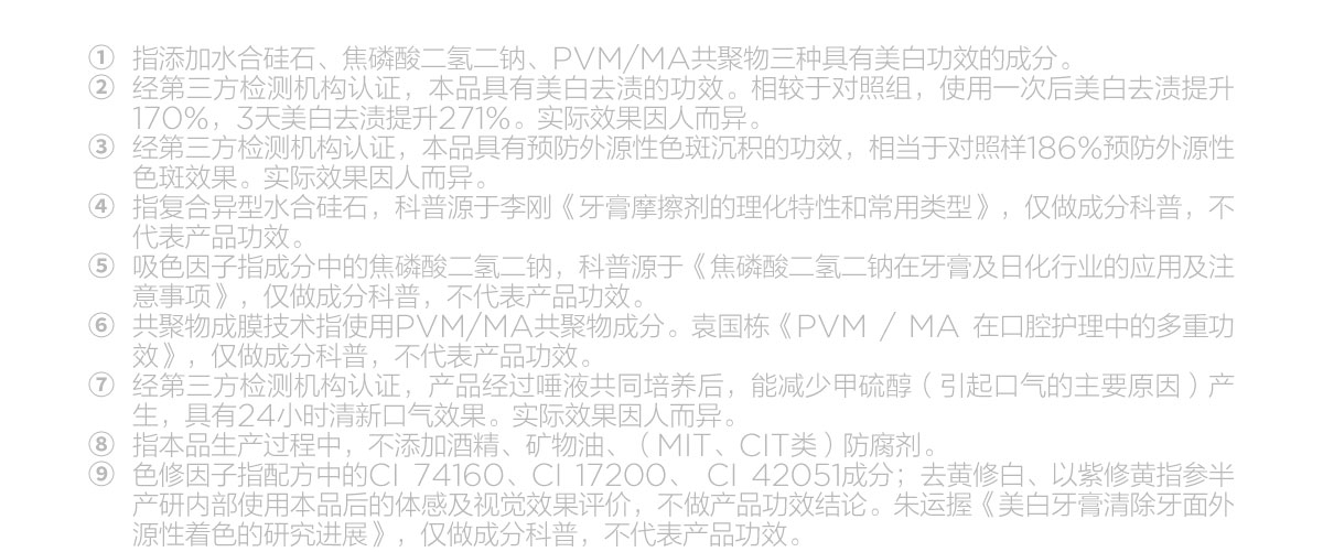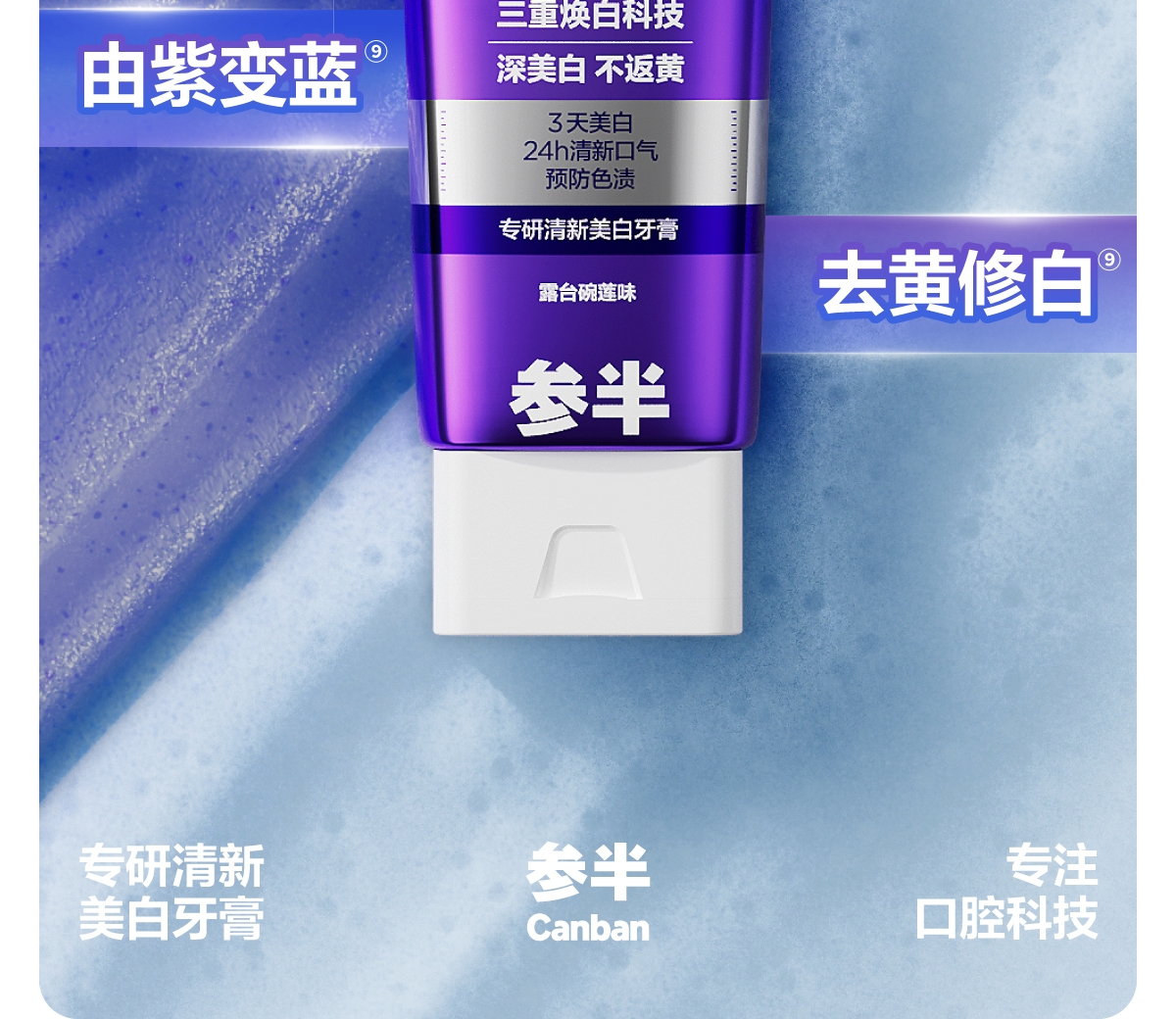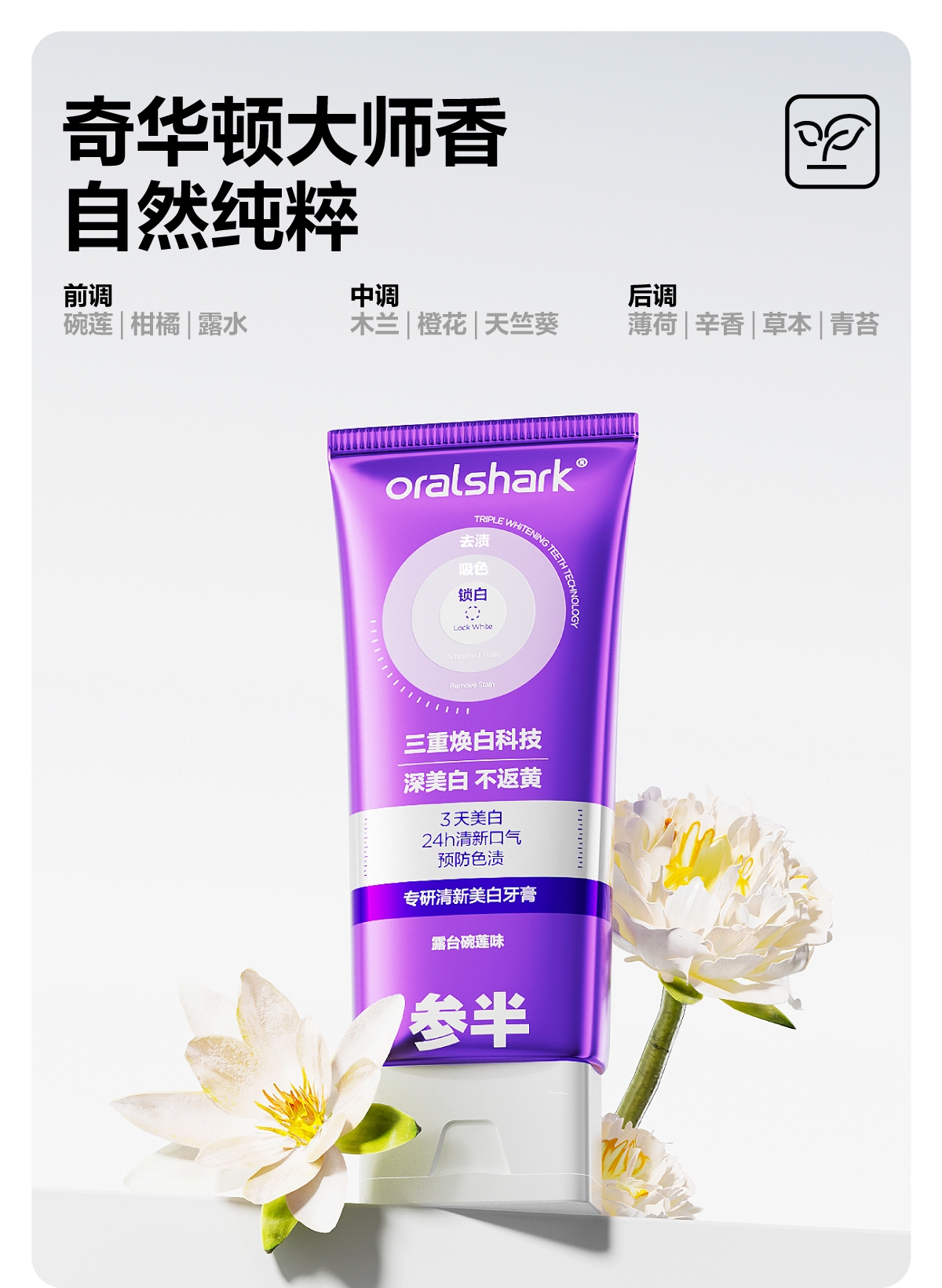 专研色修去渍,快速分解茶咖啡渍,提亮牙色;形成防护膜,防色渍附着,长效锁白不返黄;益生菌清新口气,温和护龈,敏感牙适用