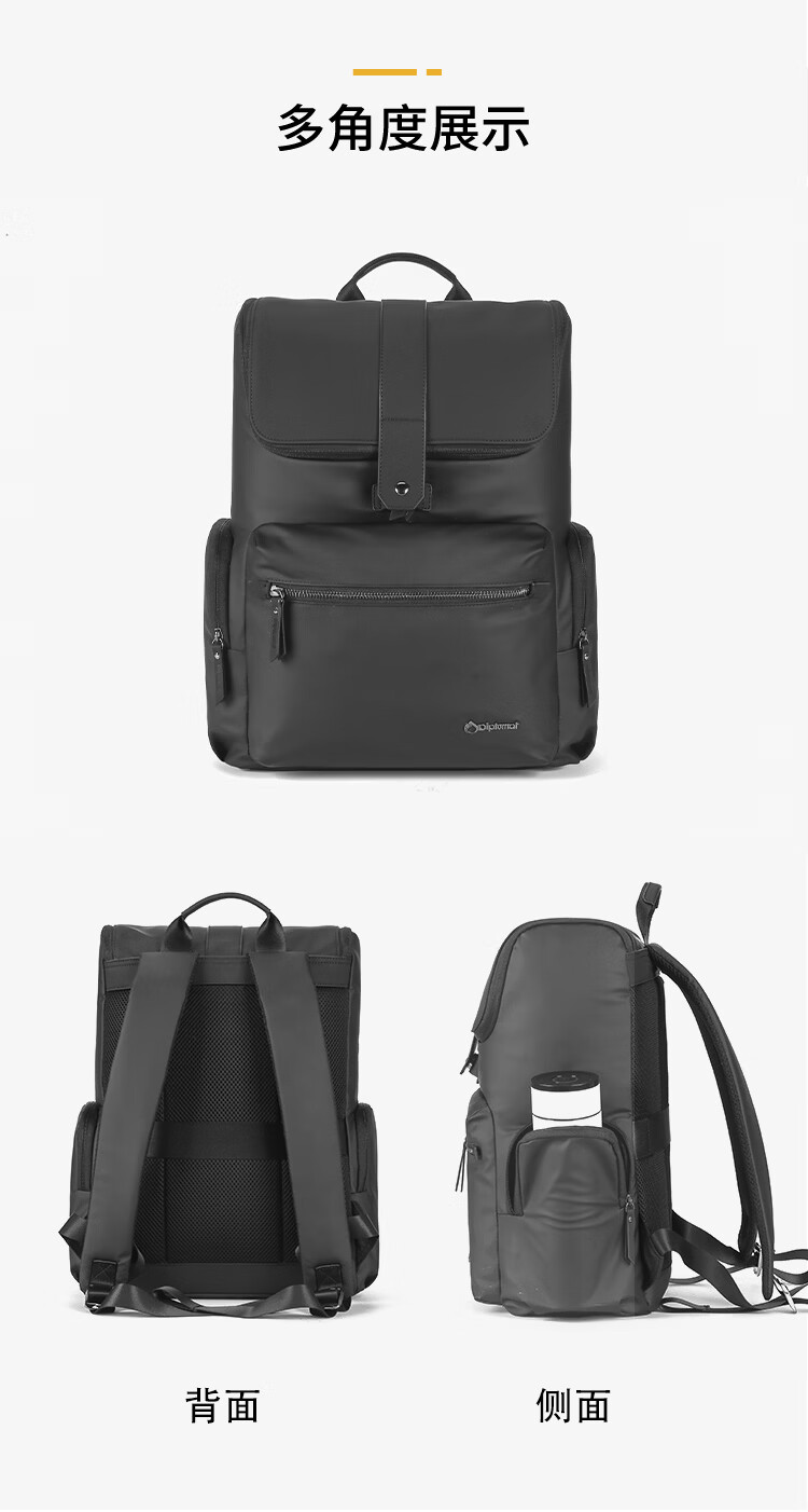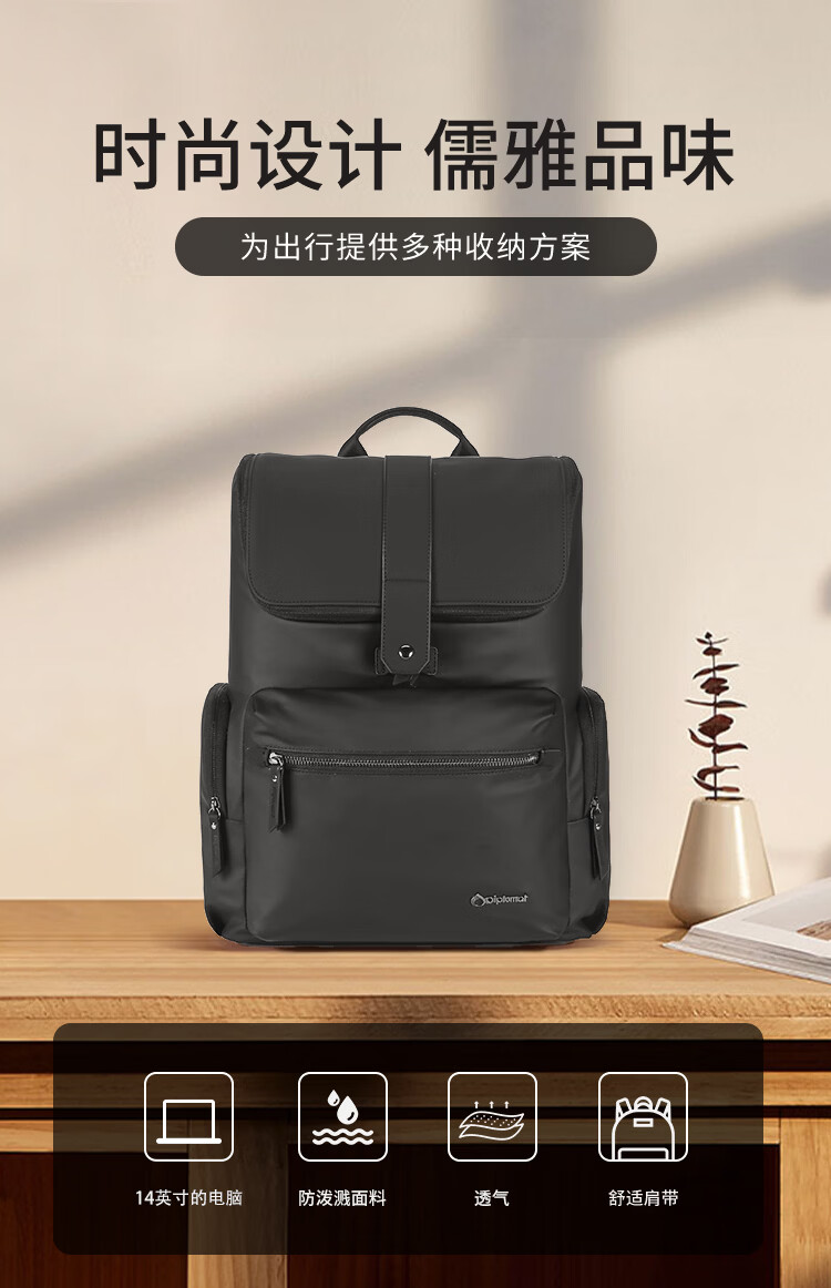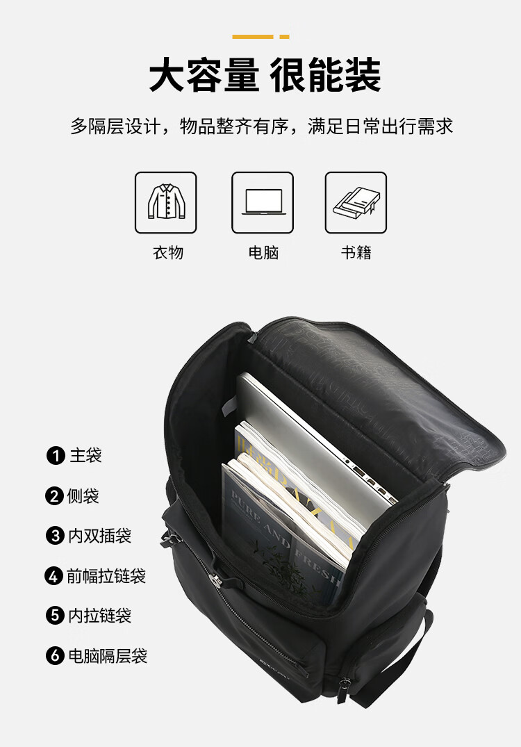 立体翻盖利落剪裁,轻奢质感商务首选;高密度PU+优质面料,防泼耐磨,无惧风雨;大开口大容量主仓,拉链搭扣设计,防止物品倒出