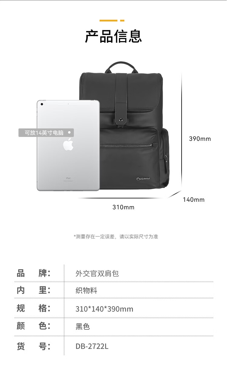 外交官 休闲双肩背包旅行包DB-2722L