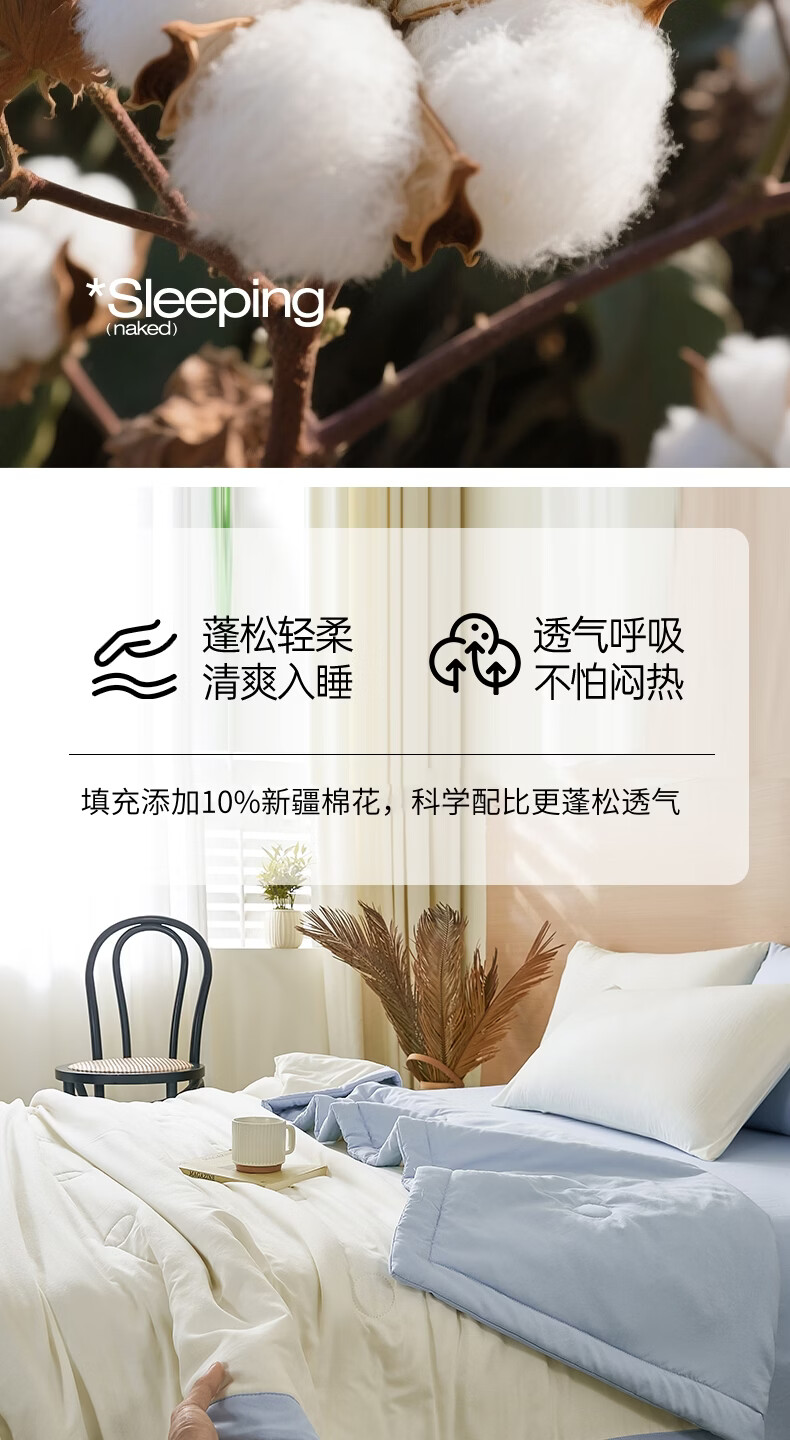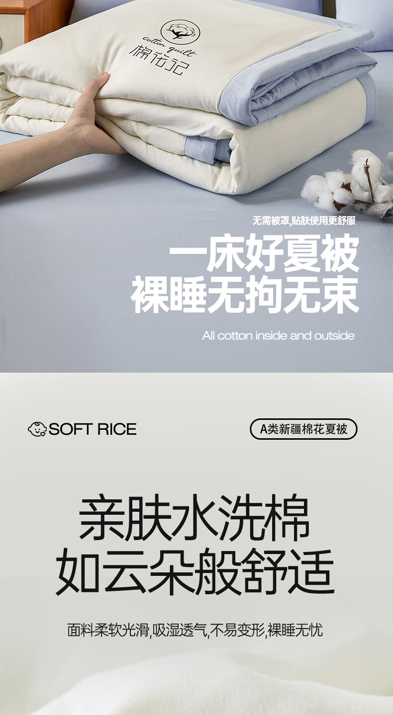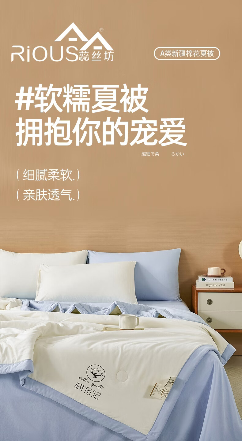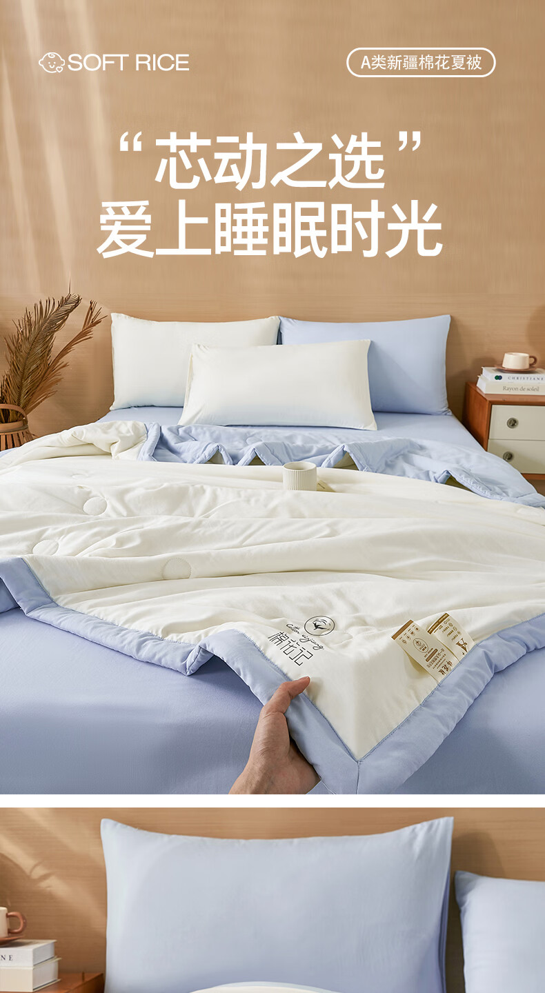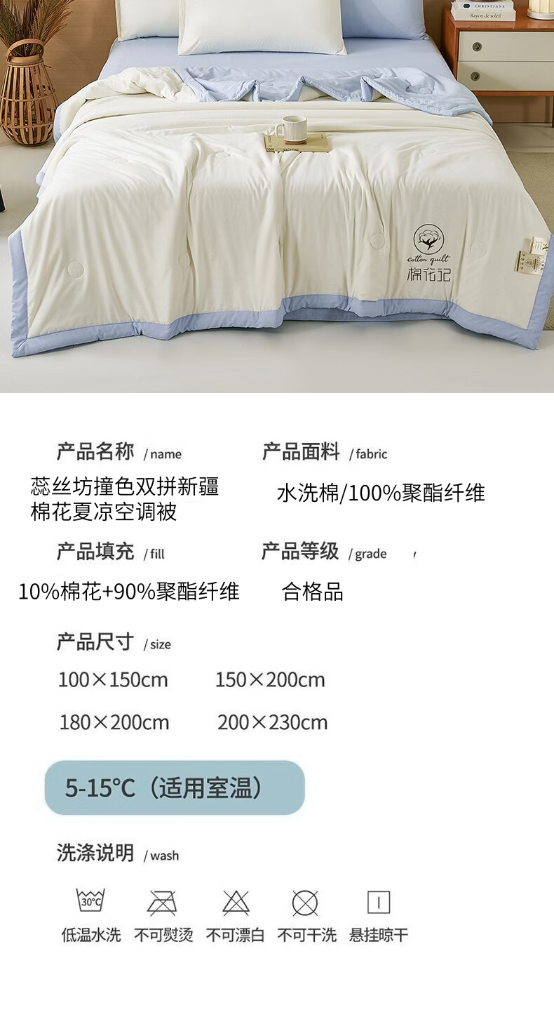蕊丝坊 撞色双拼新疆棉花夏凉空调被