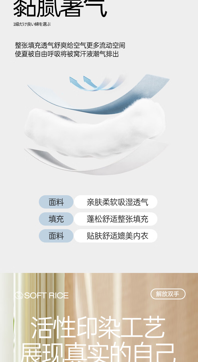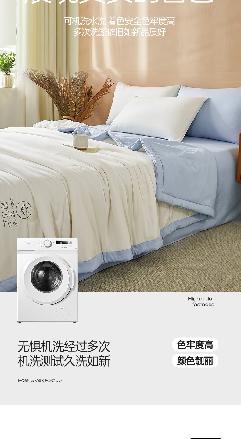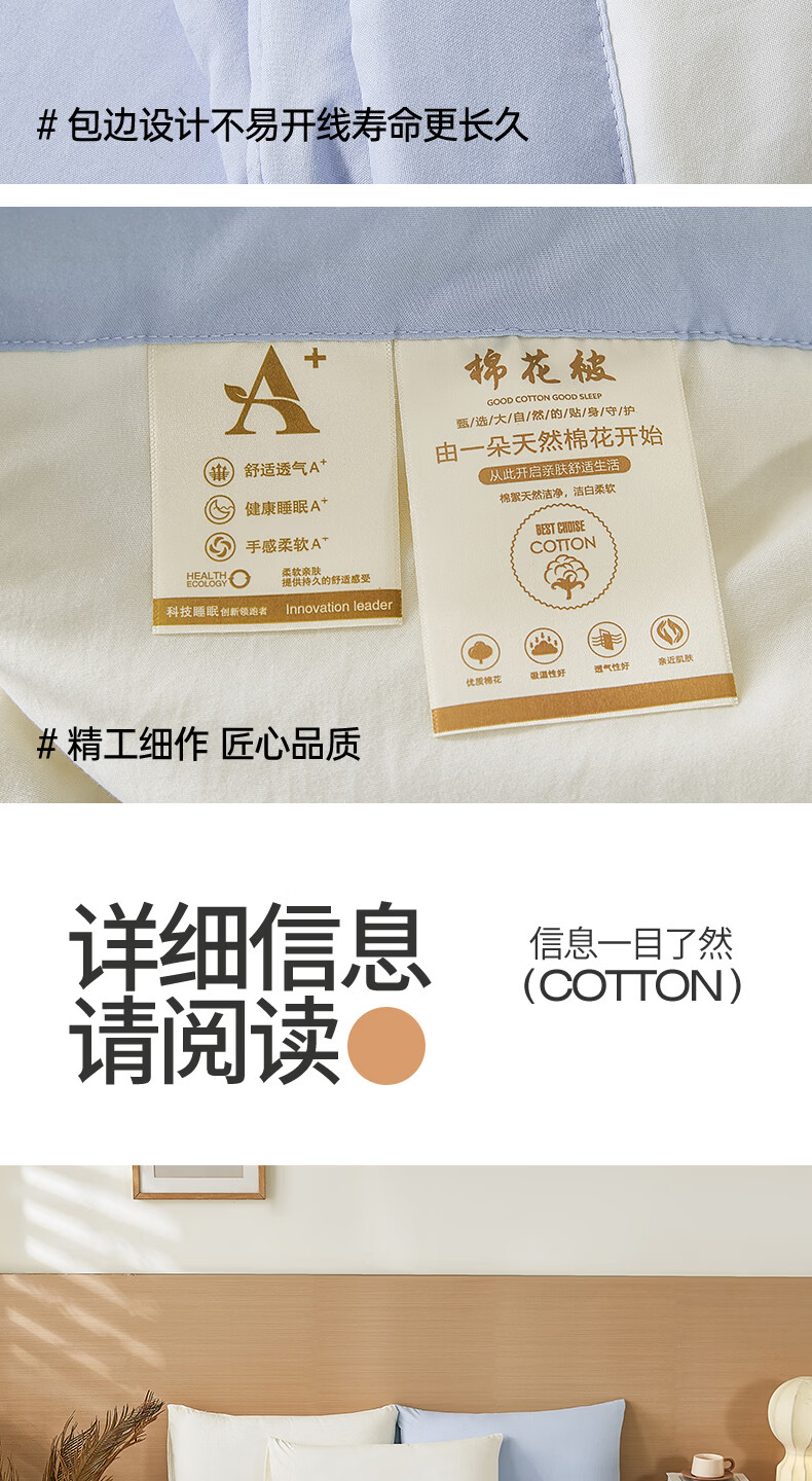 新疆棉花的天然温润与聚酯纤维的蓬松回弹,薄而有支撑;水洗棉面料,经过预缩水处理,越洗越软,久用不发硬;浅色双拼撞色设计,颜值拉满,卧室氛围感直接升级