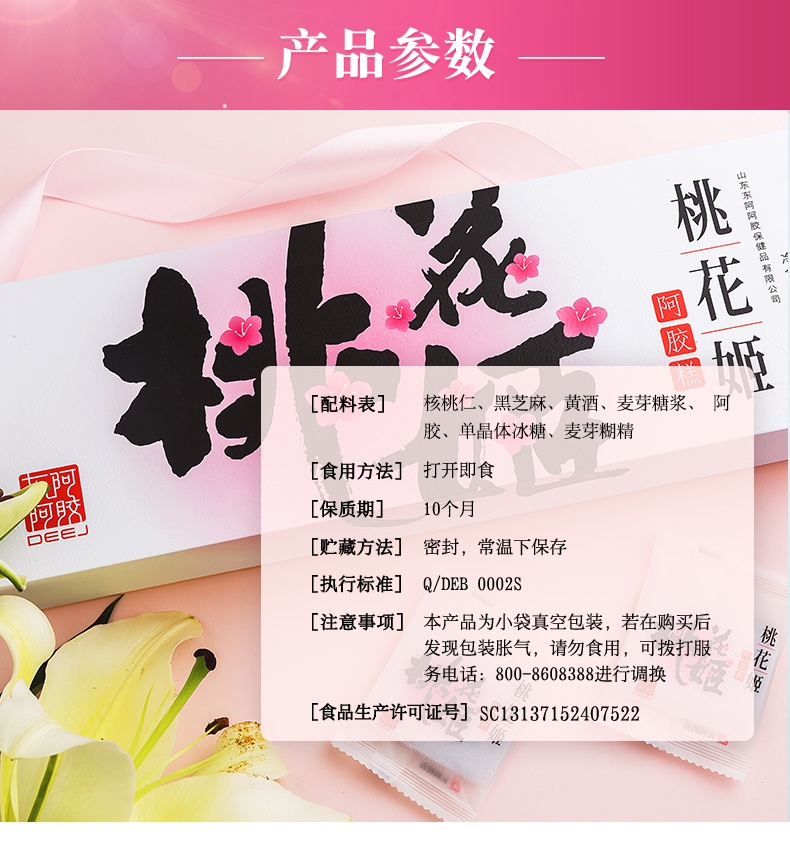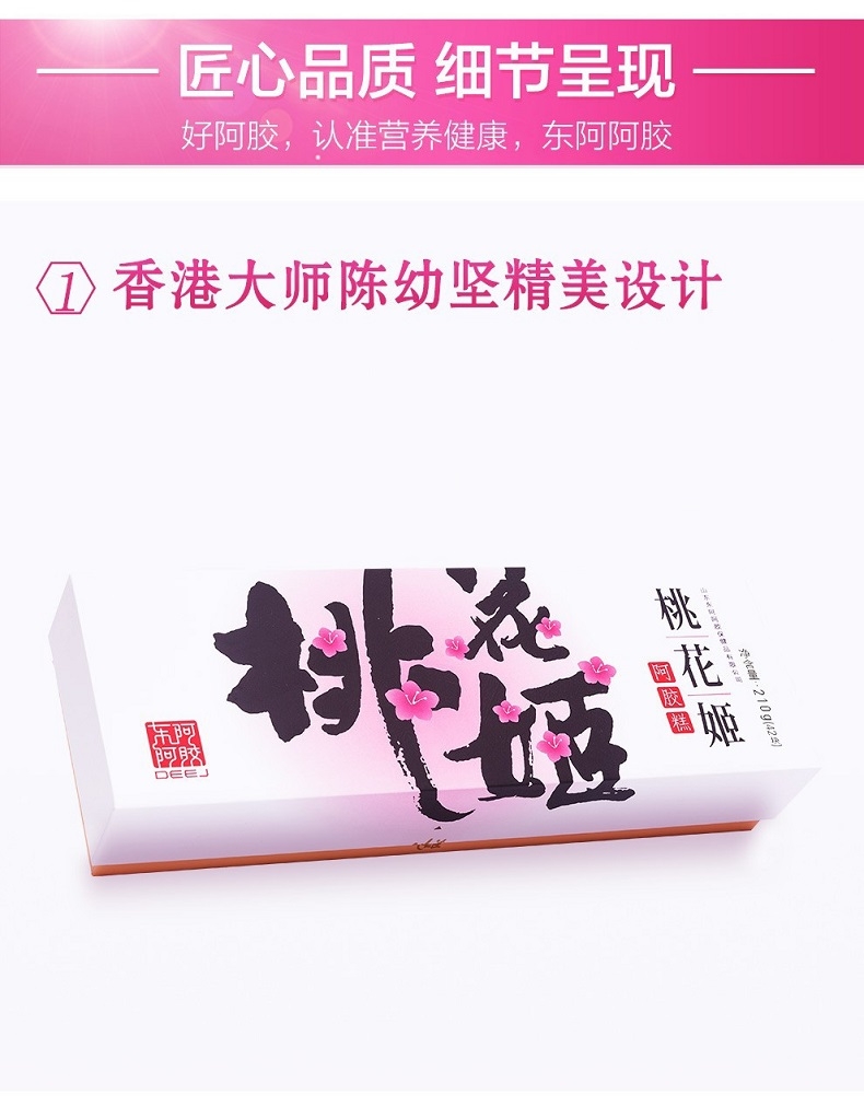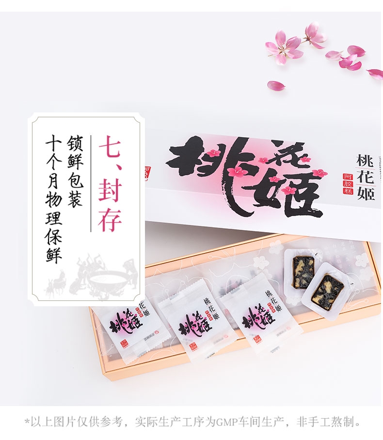 央企华润集团控股上市公司东阿阿胶荣誉出品;桃花姬采用东阿阿胶为主要原料,软糯香甜;温润甘醇