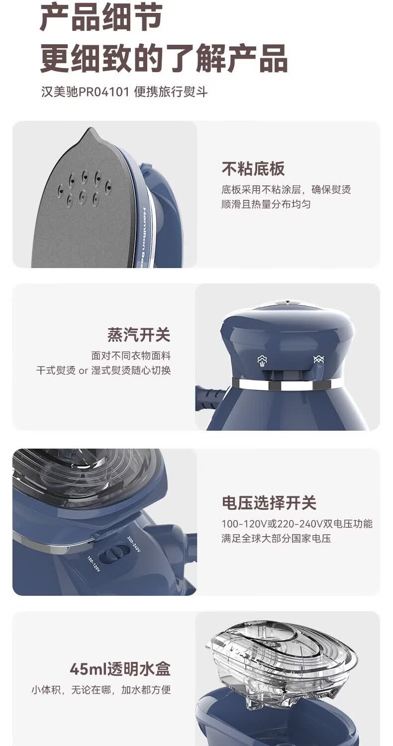 汉美驰 旅行出差手持便携式蒸汽电熨斗PR04101
