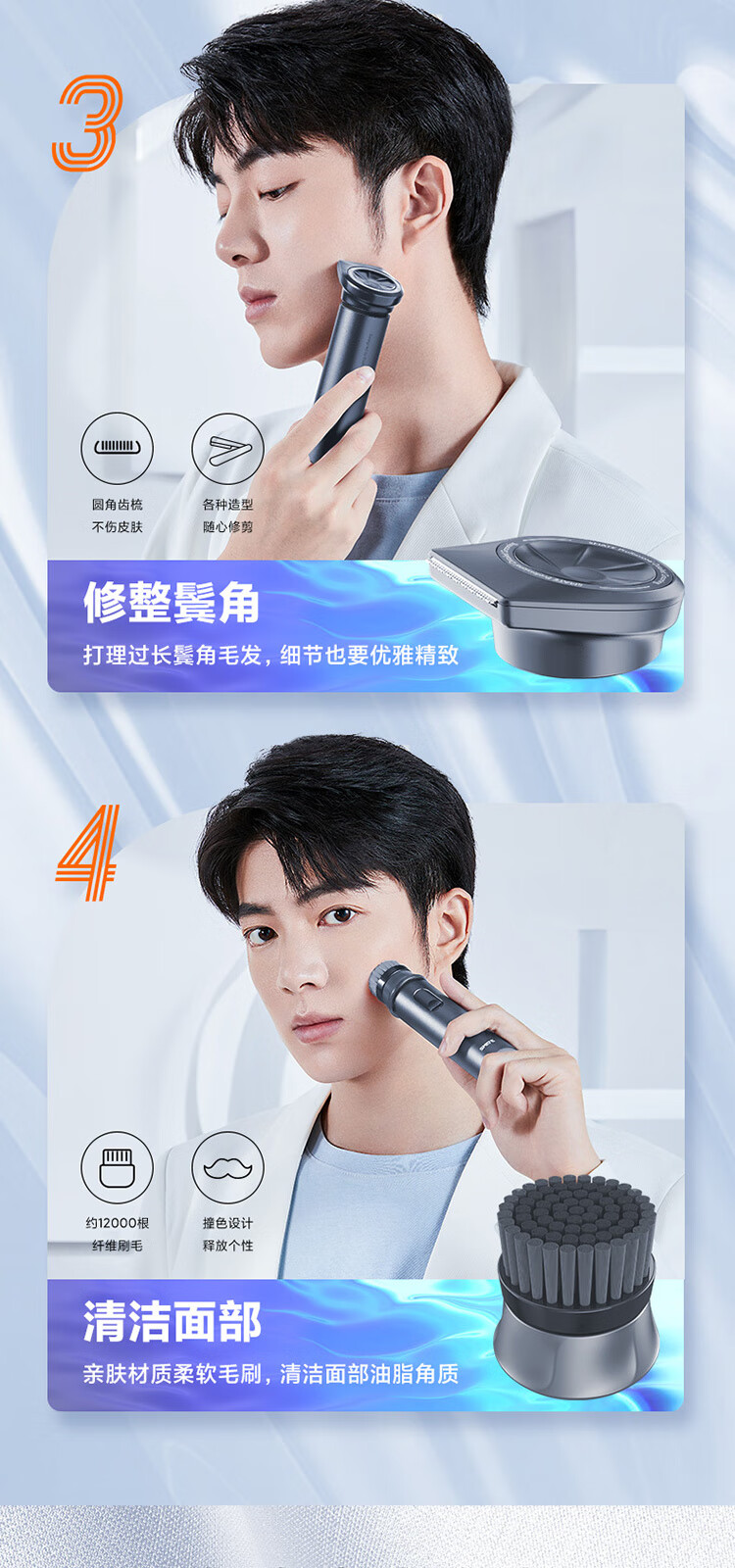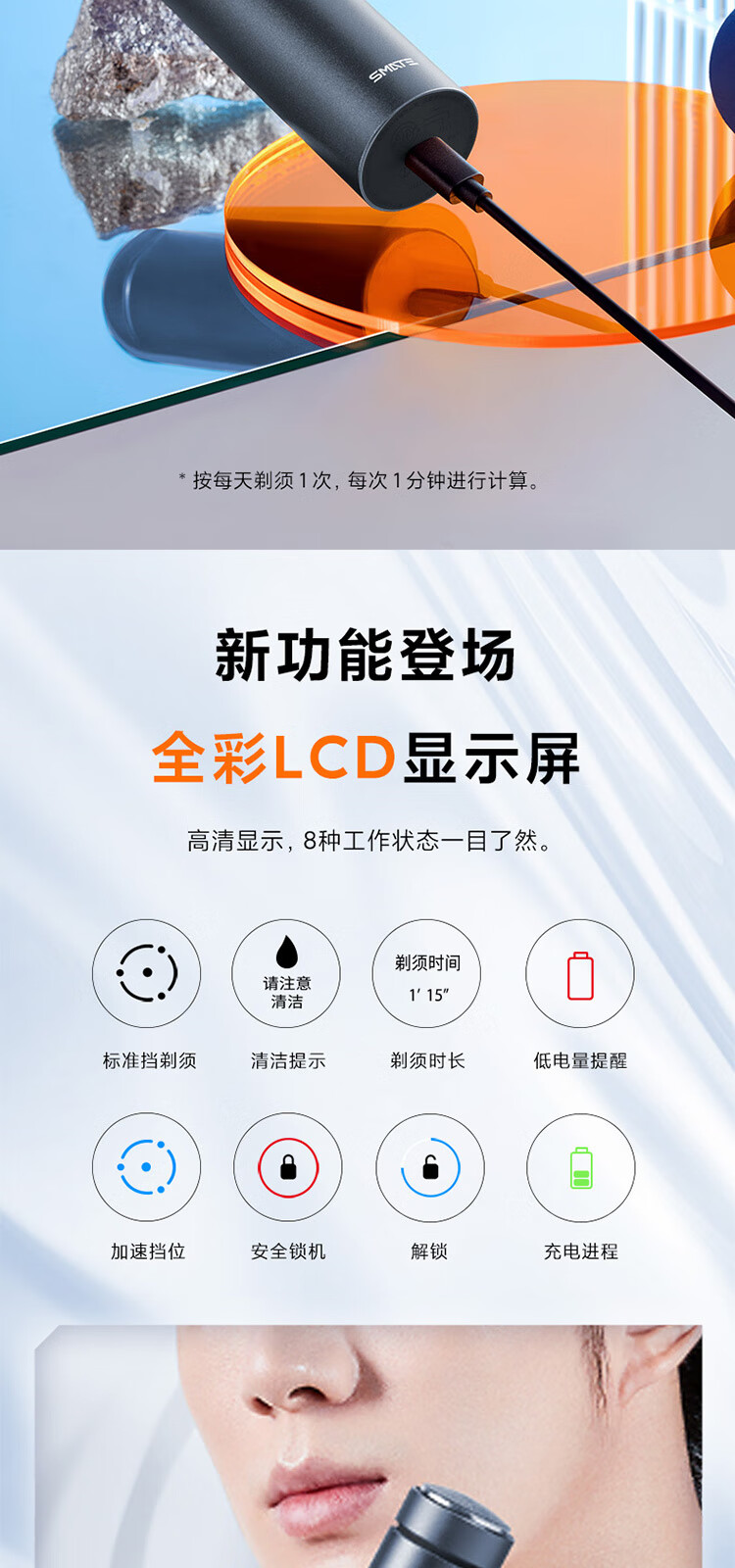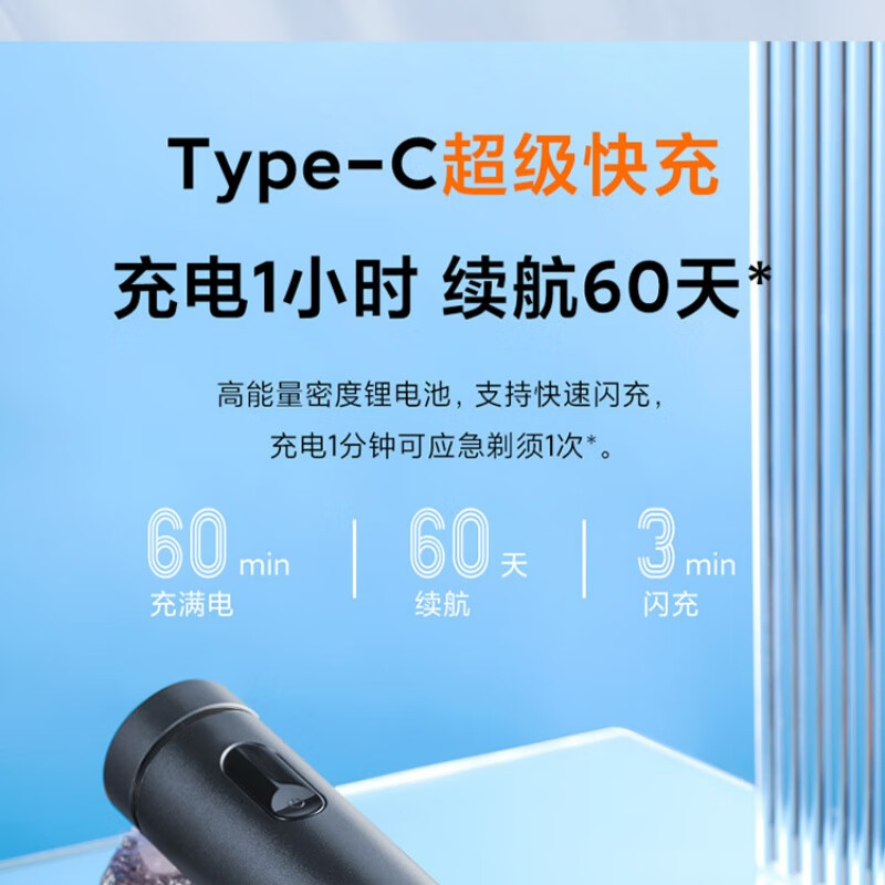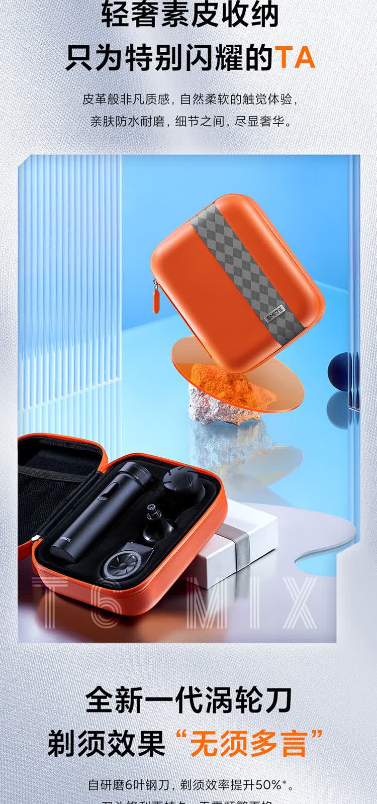 升级环保舒适双感刀网;创新ECM精密加工六叶刀片;磨砂哑光质感铝合金机身
