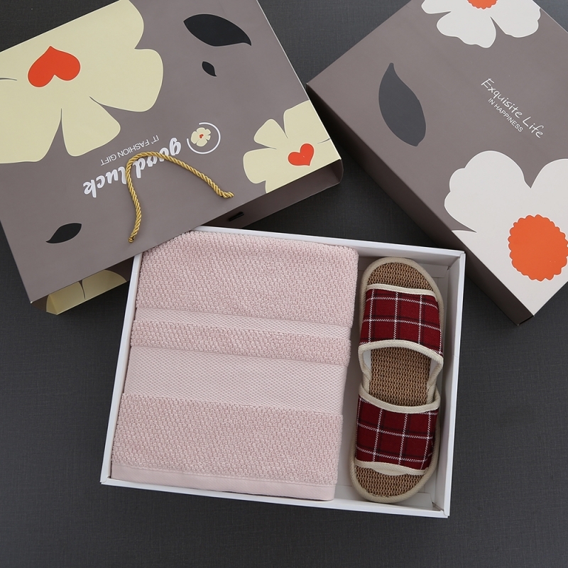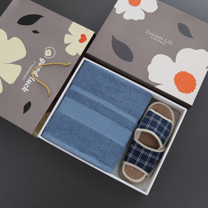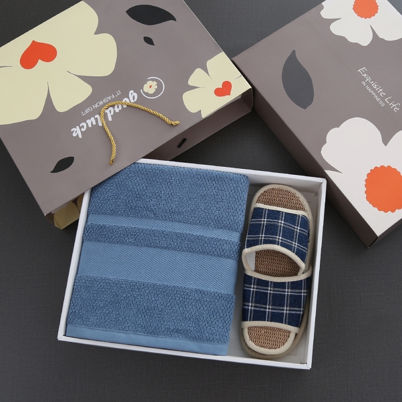 奥来纯 纯棉欧米浴巾老粗布拖鞋两件套