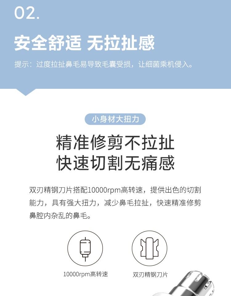 优质不锈钢刀头;锋利不拉扯毛发;高速微型马达