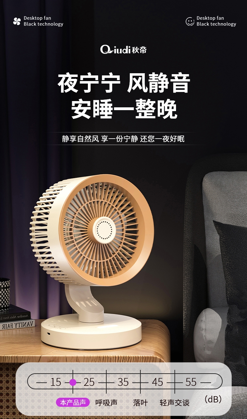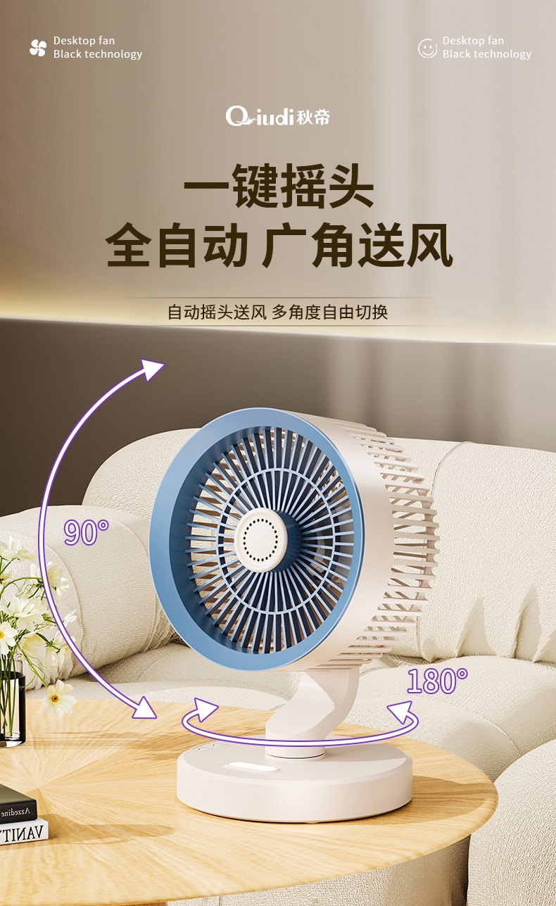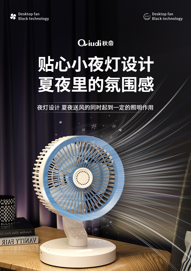 秋帝 桌面小夜灯循环风扇台式香薰风扇QD-CC121