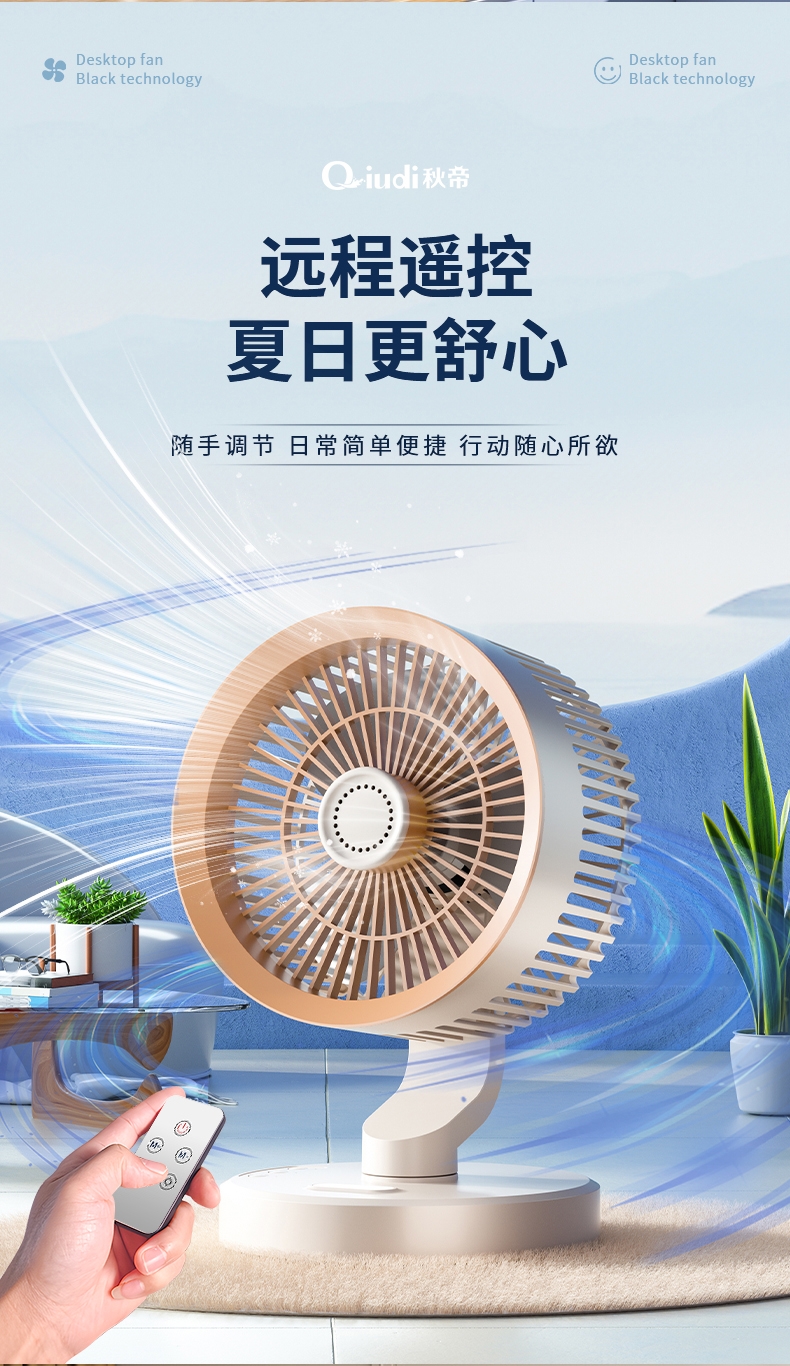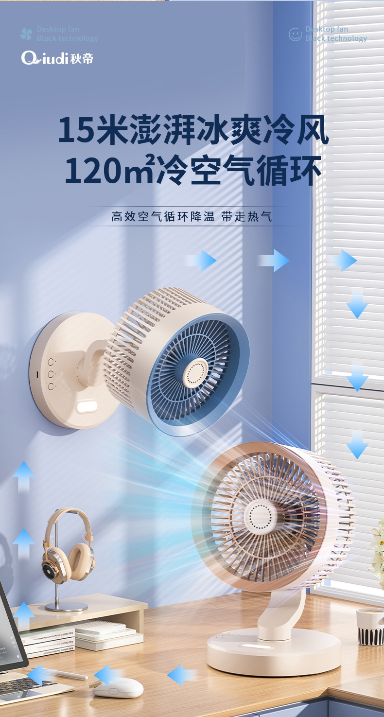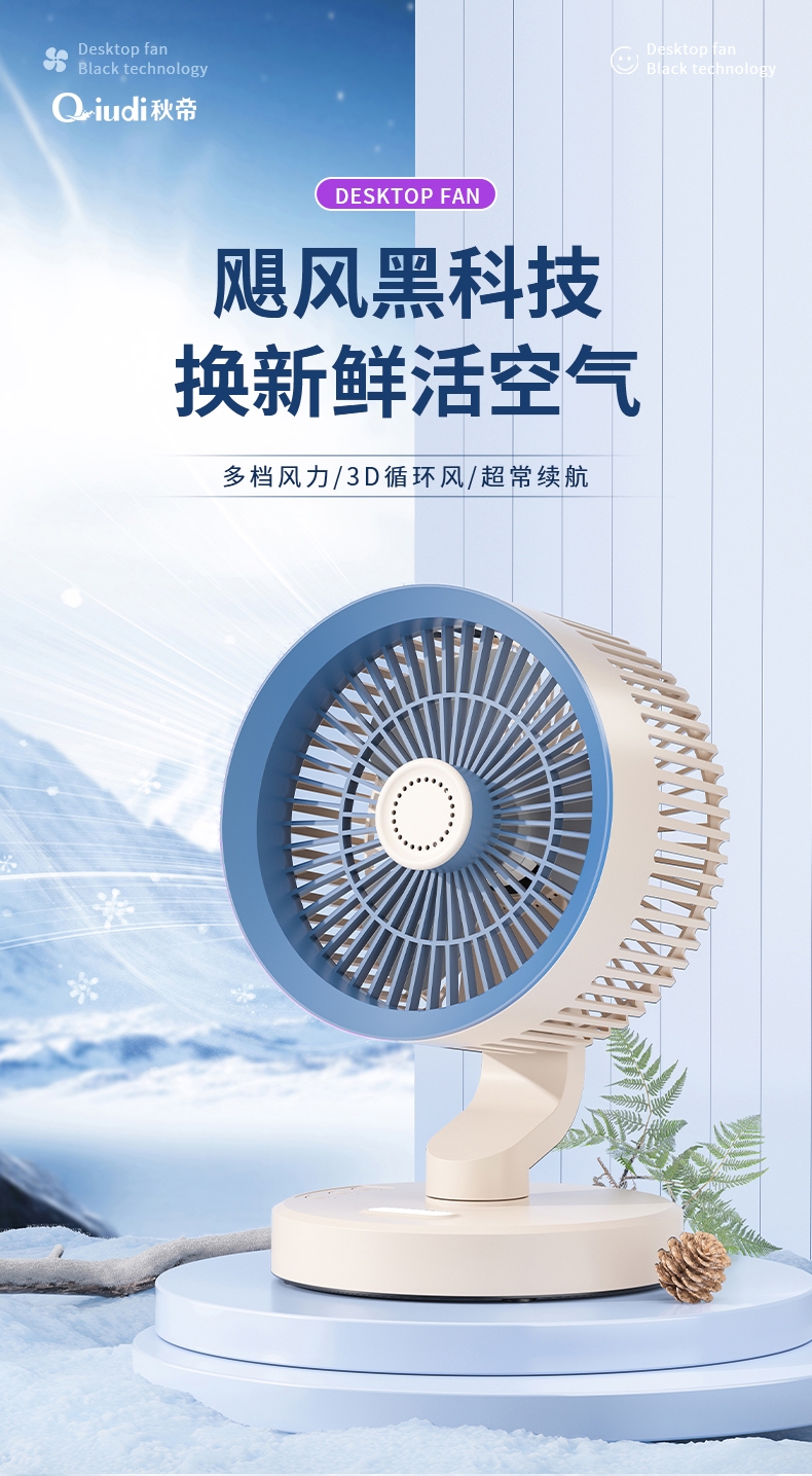 秋帝 桌面小夜灯循环风扇台式香薰风扇QD-CC121