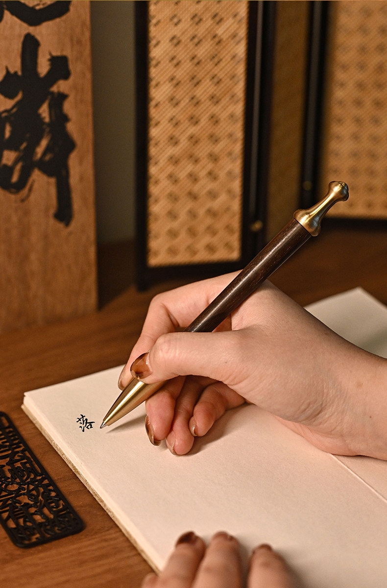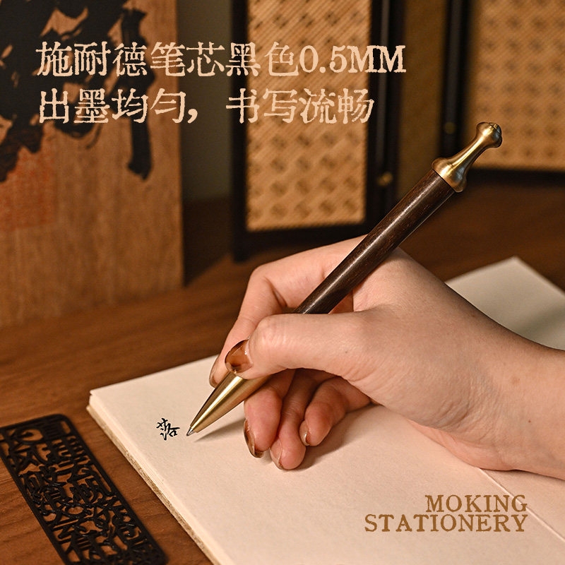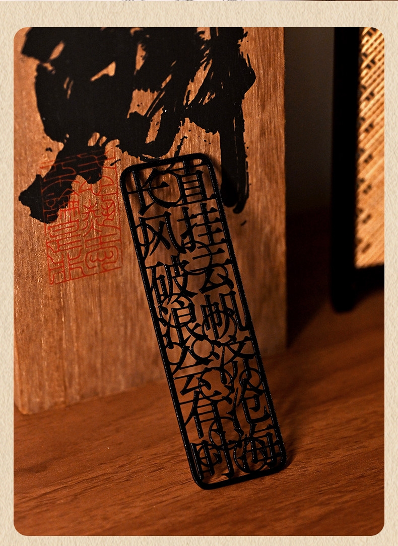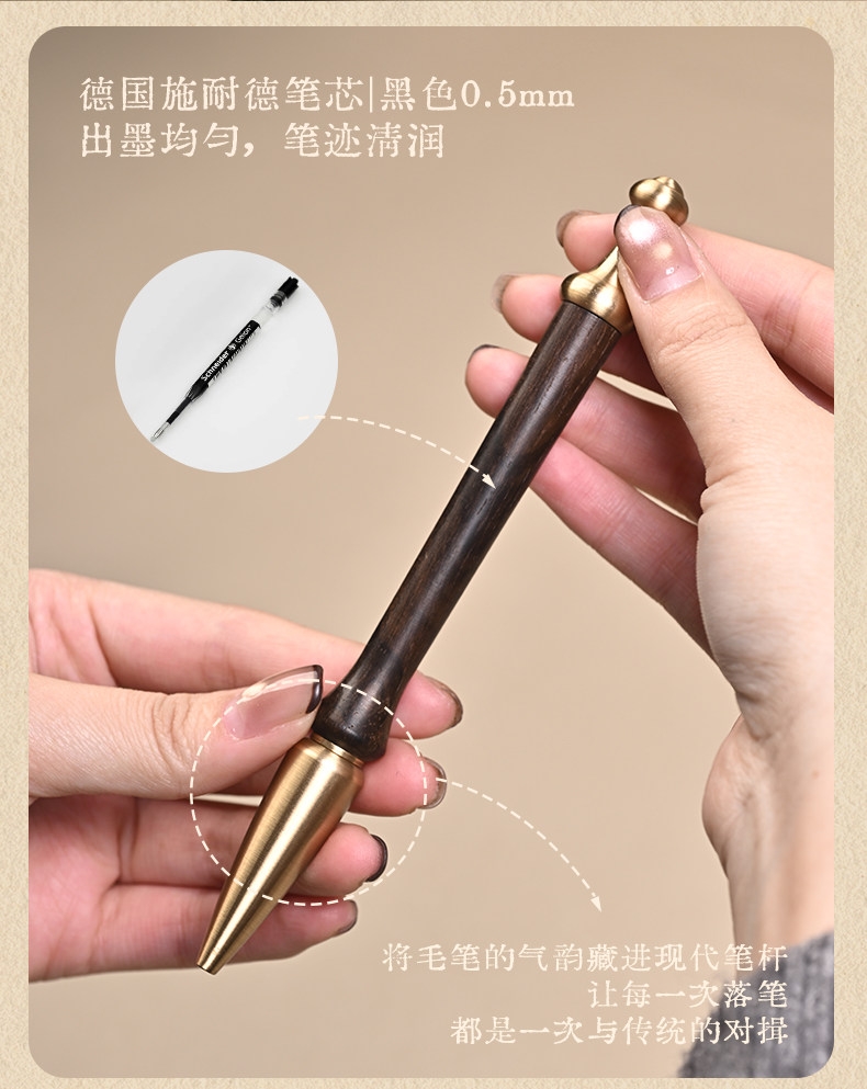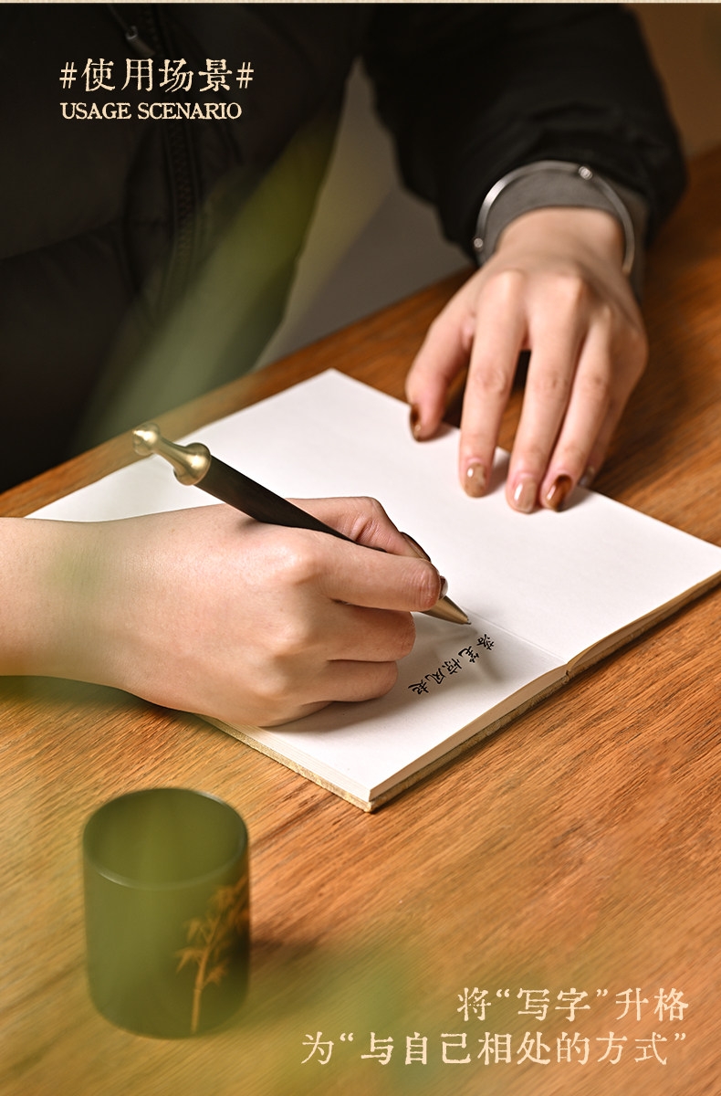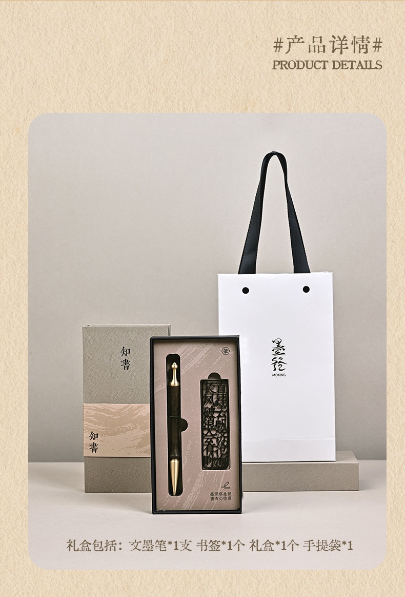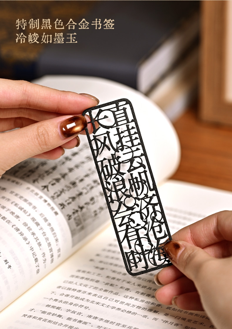 出墨均匀,笔迹清润;特制黑色合金书签,冷峻如墨玉;黄铜精铸