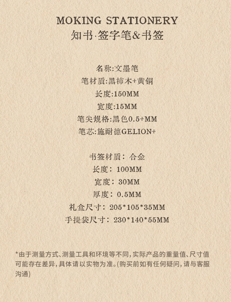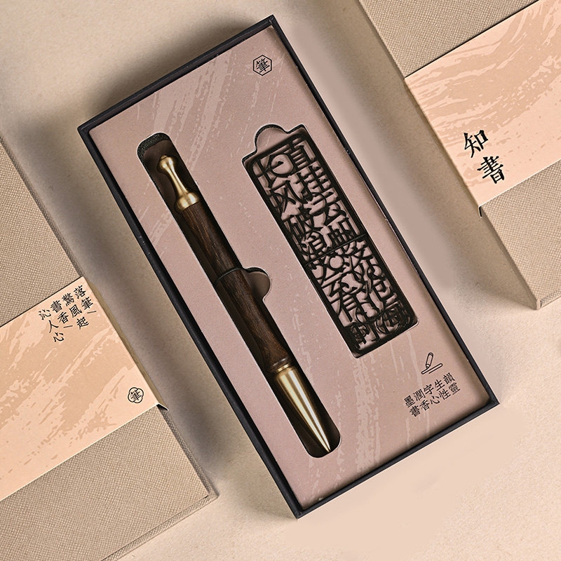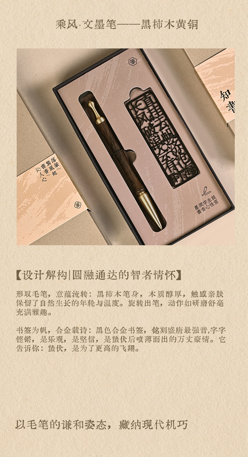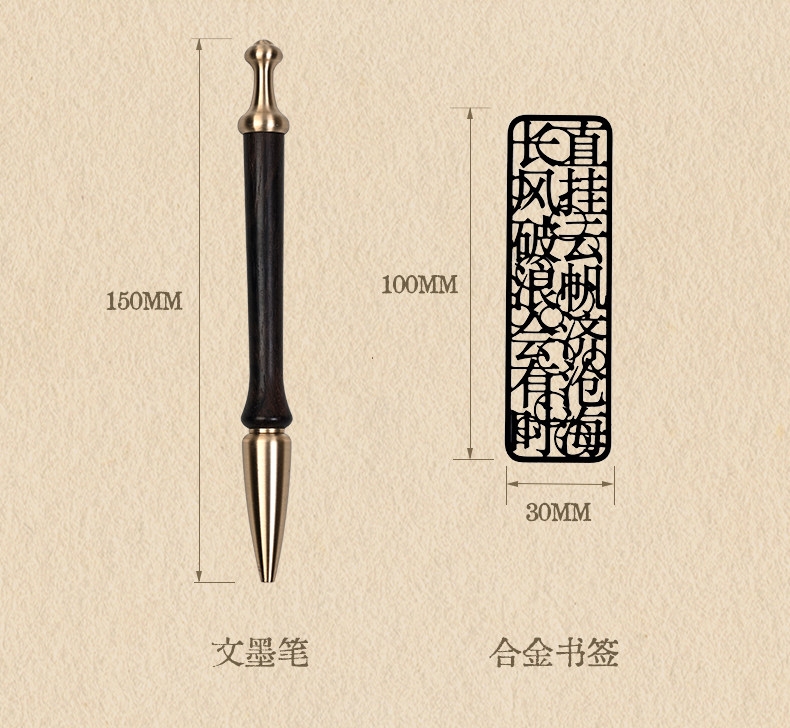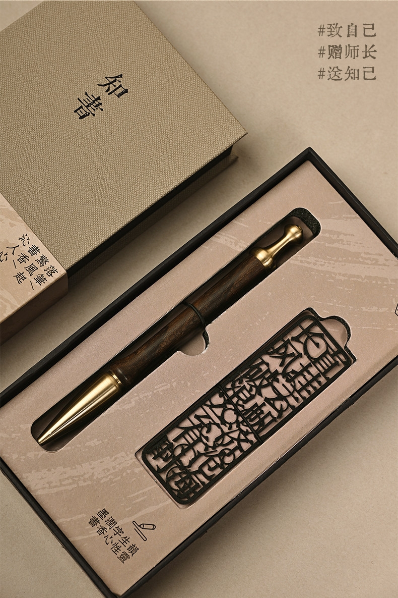 材质:文墨笔——黑柿木+黄铜 书签——合金