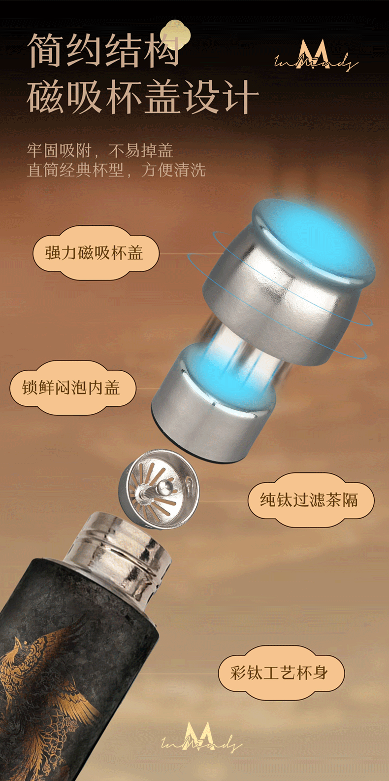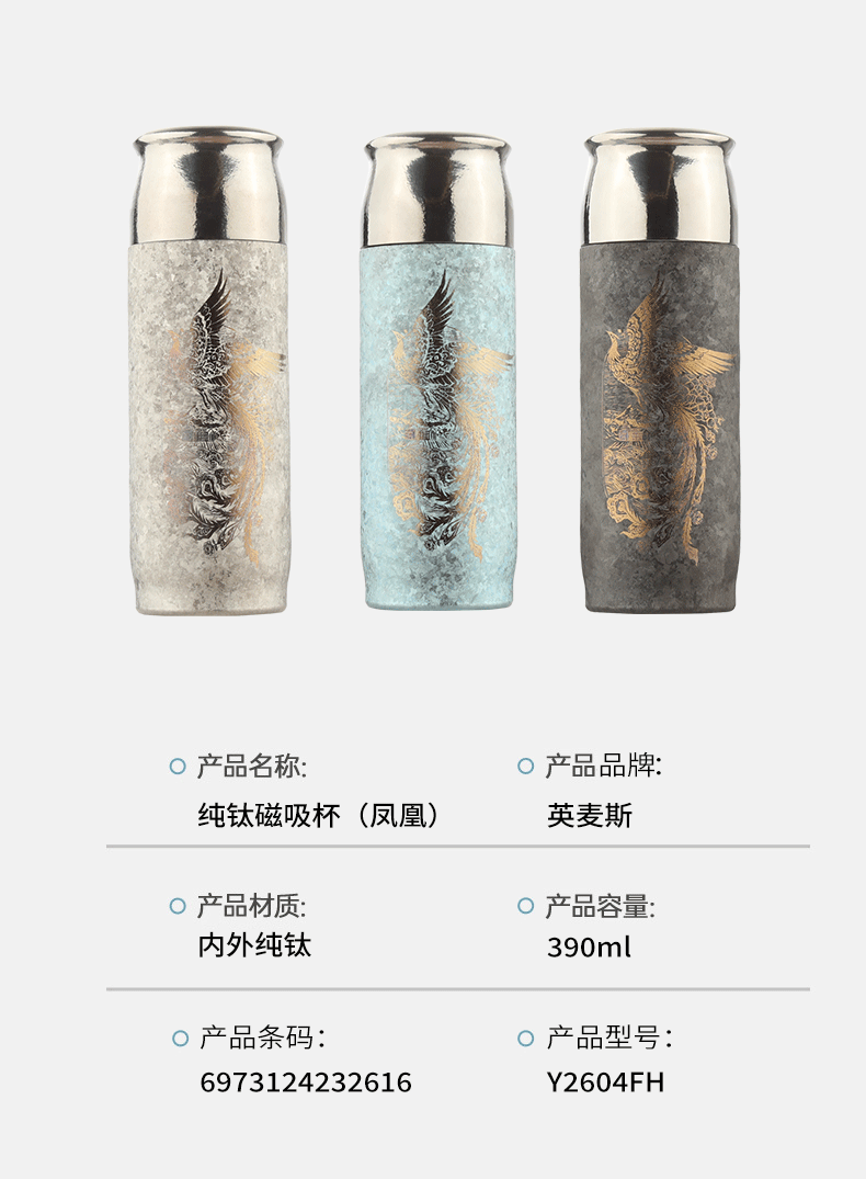 英麦斯 纯钛磁吸杯凤凰Y2604FH