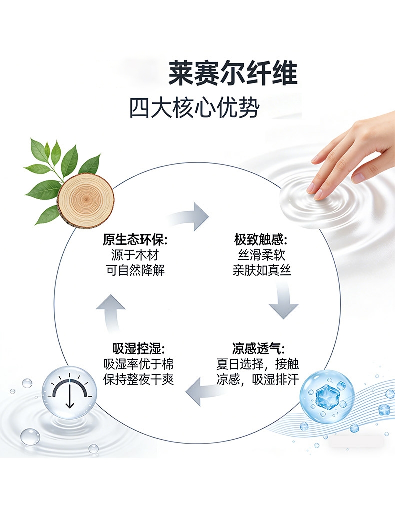 柔软顺滑、透气性强;高强力、高稳定性;优异的吸湿性三大核心优点