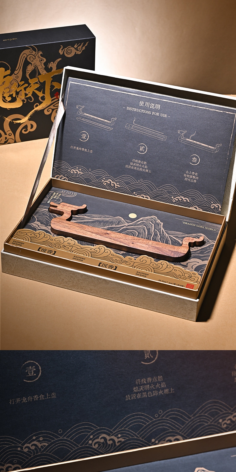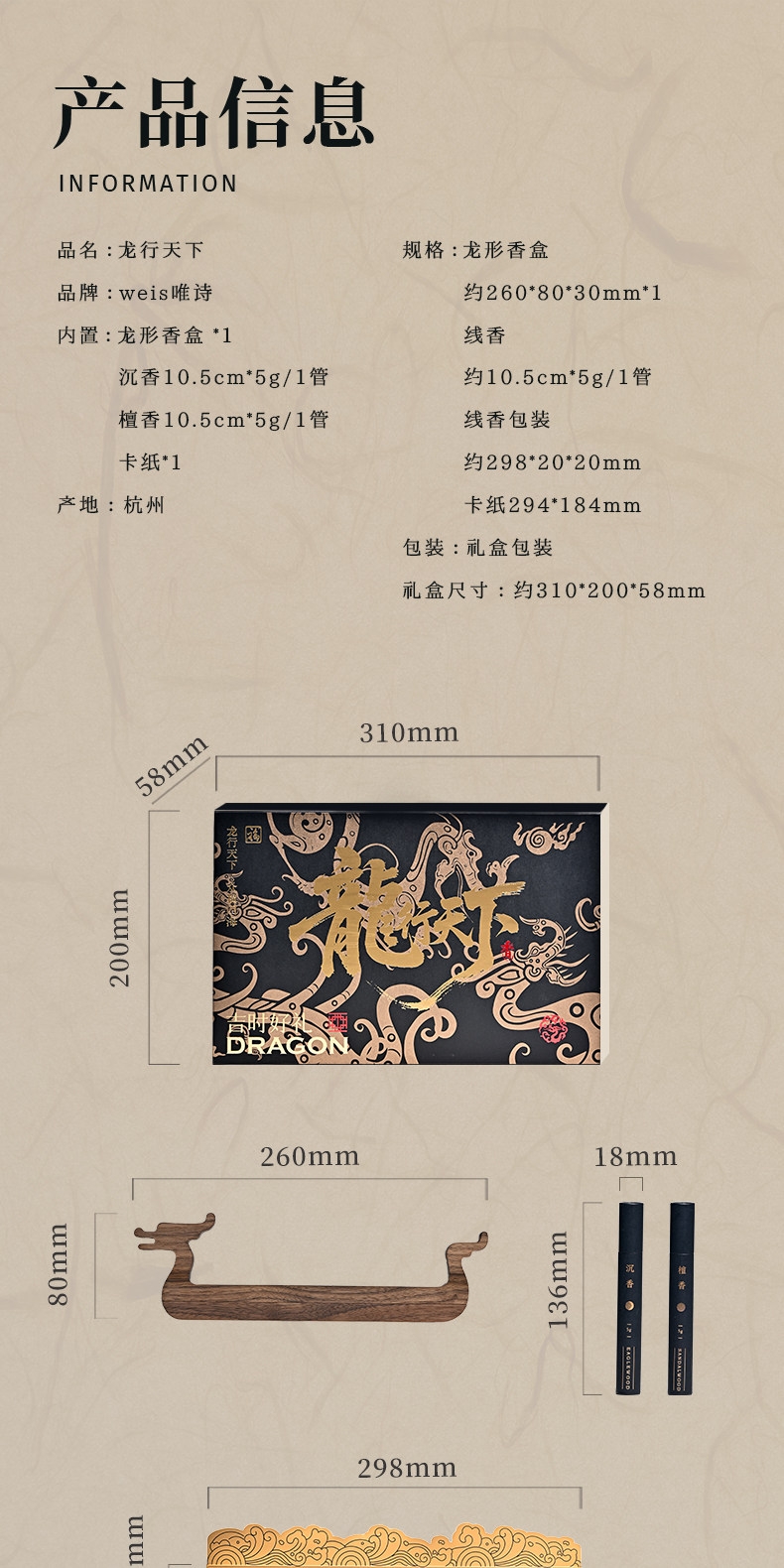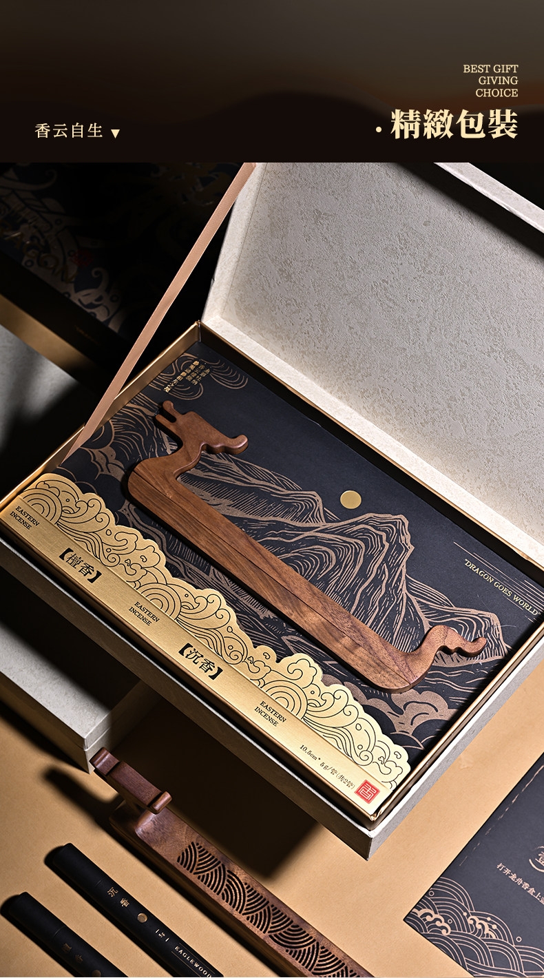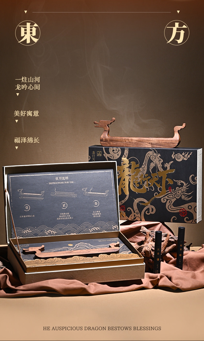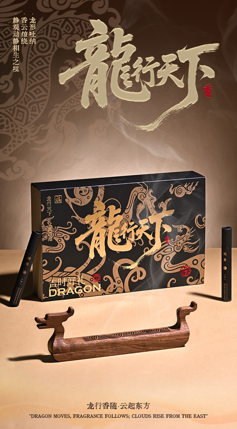 配置:龙行天下香器*1 精美礼盒装*1 沉香线香短款5g*1 檀香线香短款5g*1