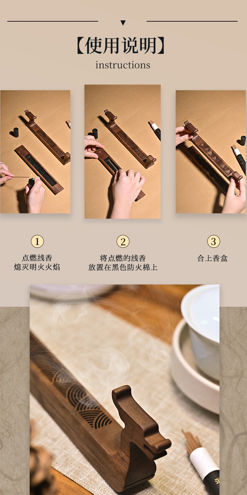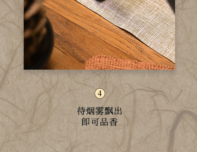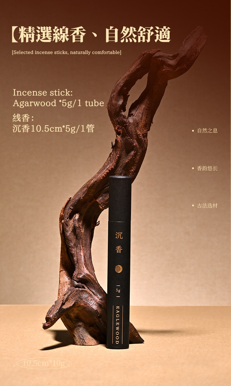 精选线香,自然舒适;精选天然香料;用心匠造,韵味醇厚