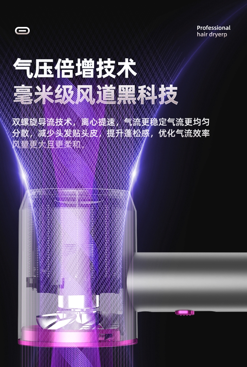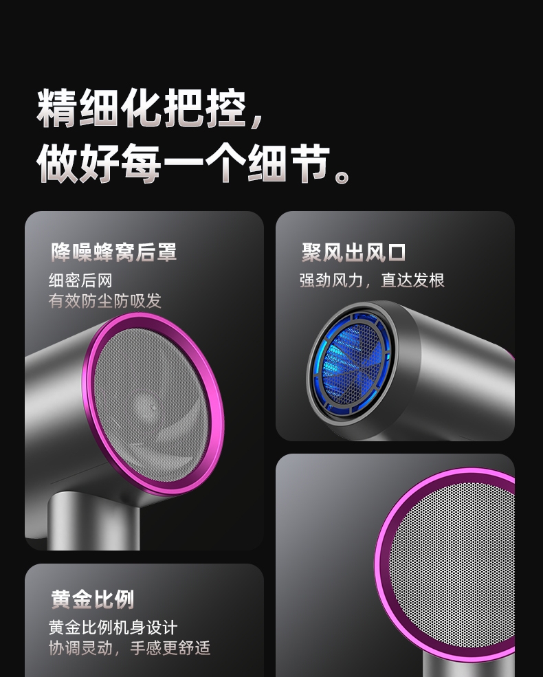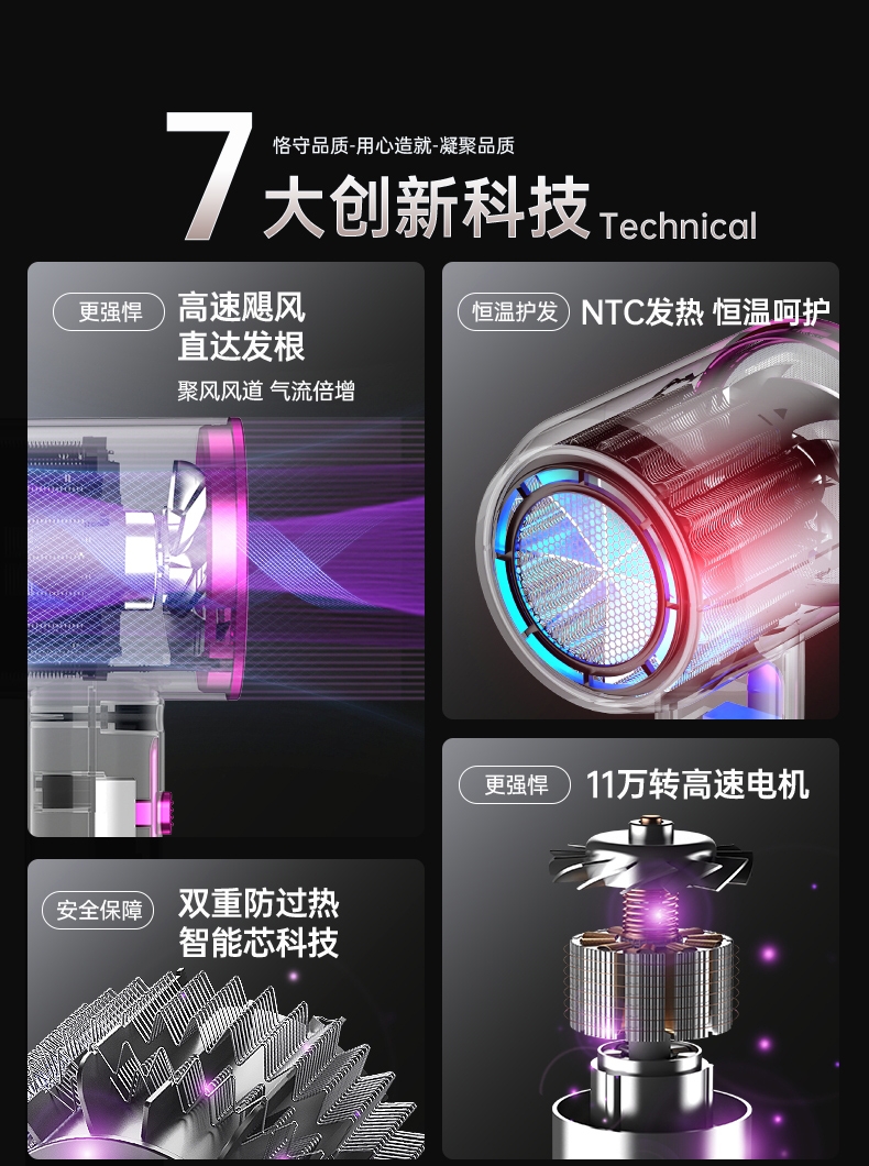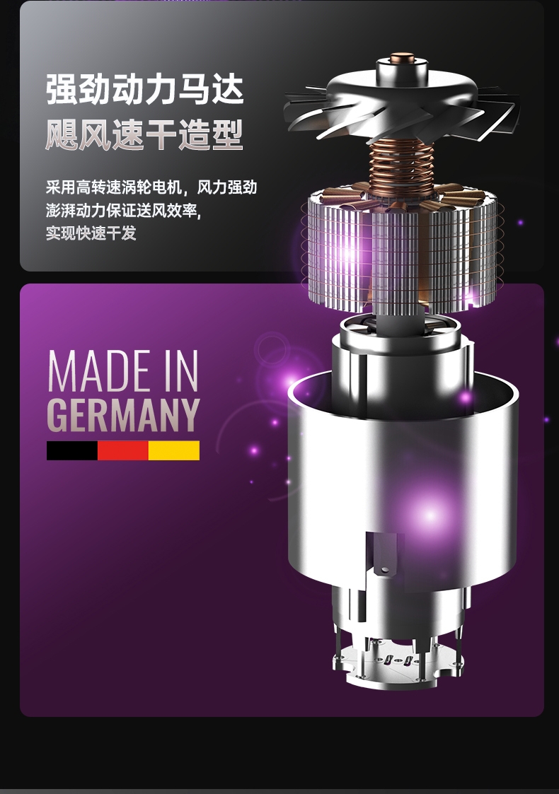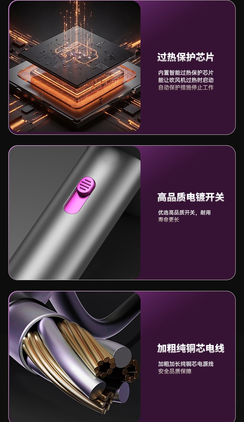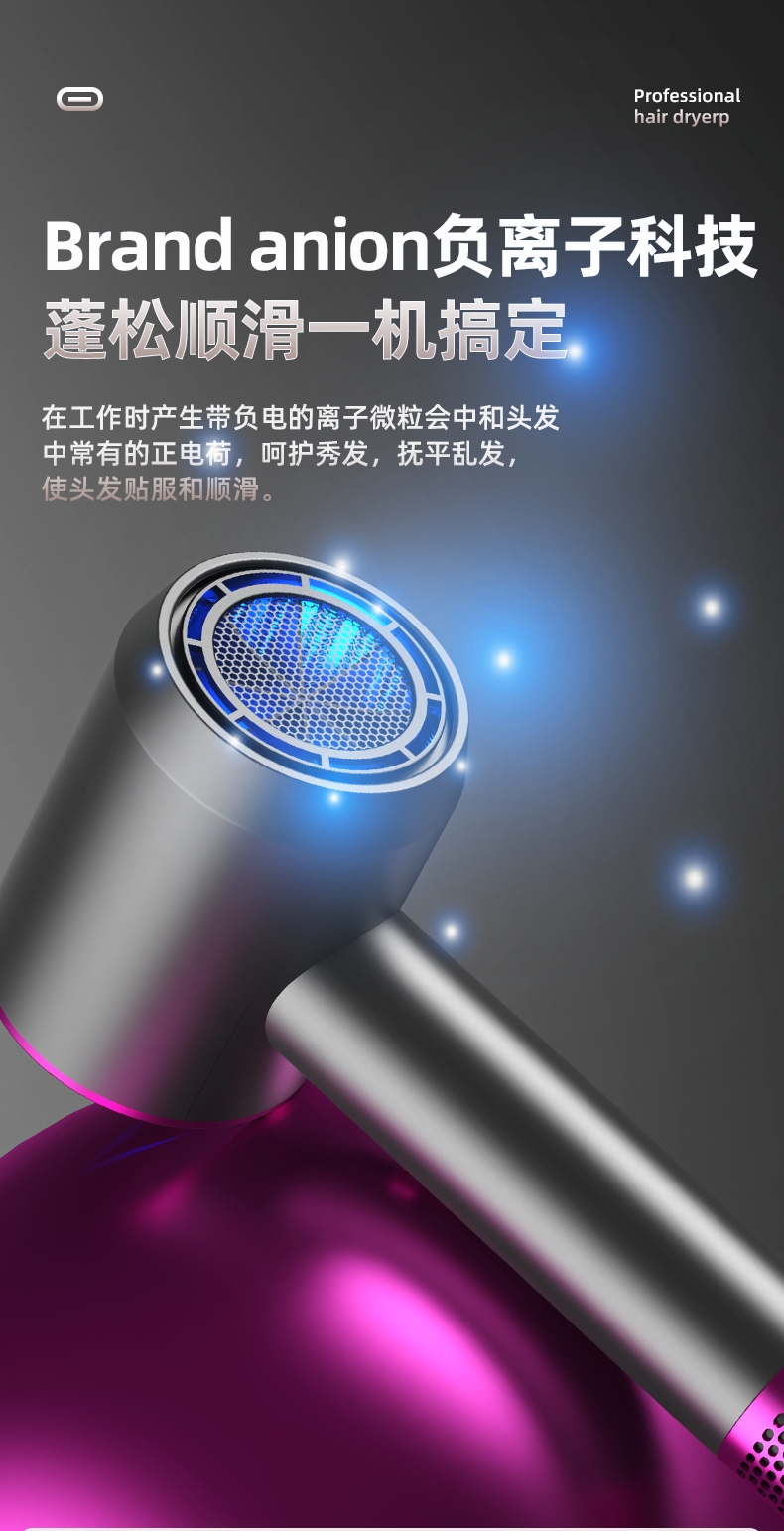 双杯蓝光千亿负离子护发;大风力轻音;智能温控电子元件保护更安全
